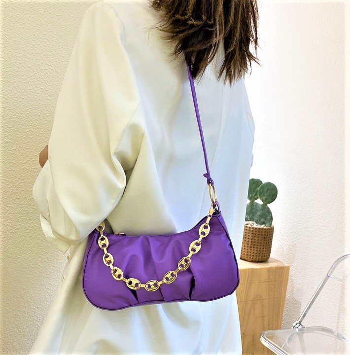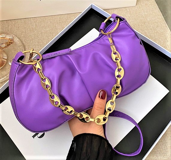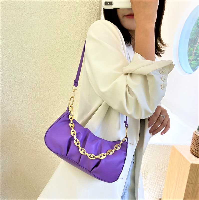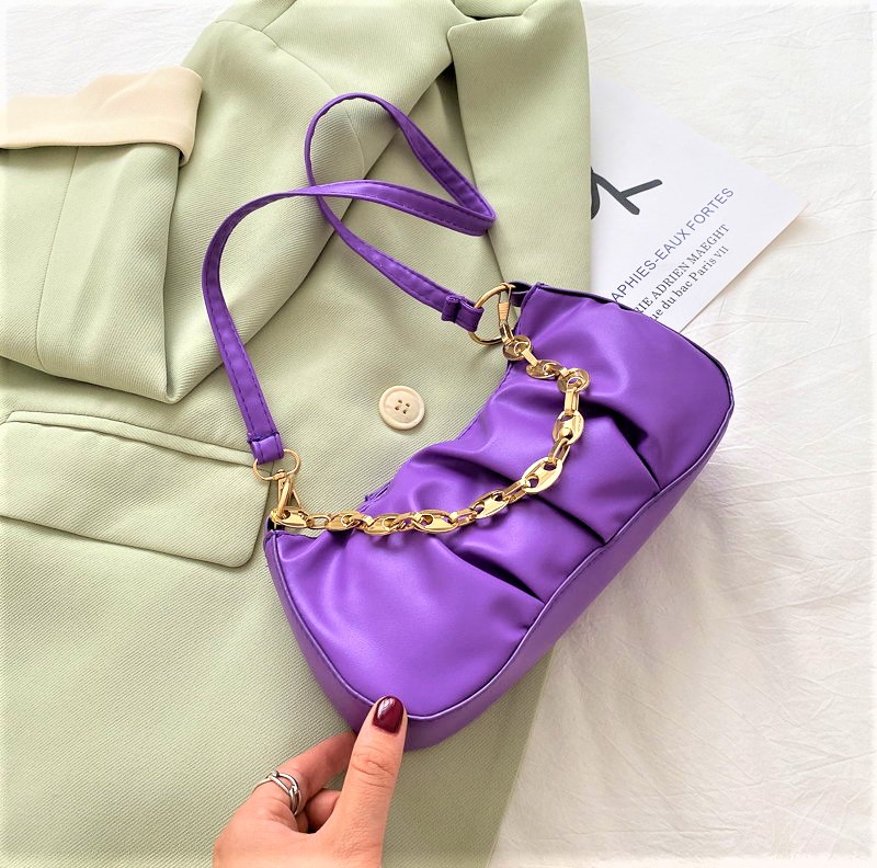 Vintage Minimal Baguette Faux Leather Cross Shoulder Chain Strap Ruched Mini Puffy Bag Streetwear 90s Y2K Party Nightclub Dating Occasion Amazing
