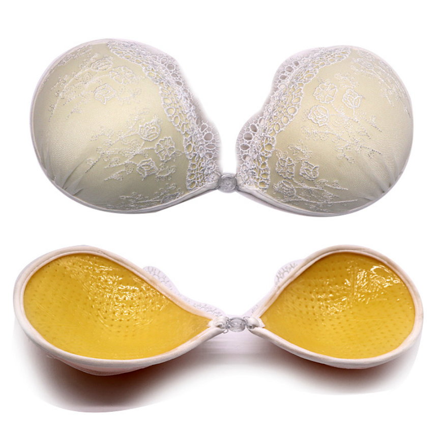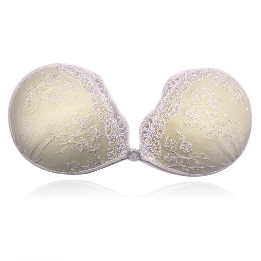 Vintage Wedding Bras White Lace Embroidery Bra Super Push Up Silicone Bralette Backless Strapless Invisible Pushup Sticky Bras Amazing