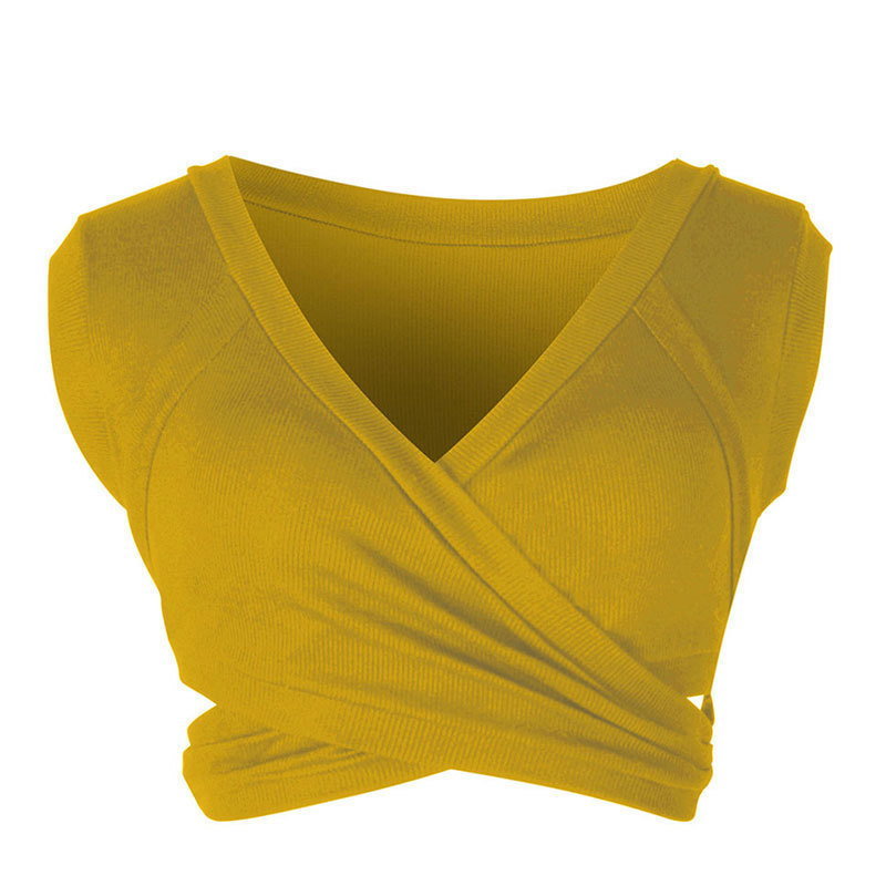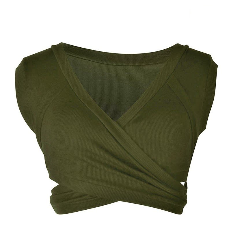 Sexy Wrap Deep V-neck Ribbed Knitted Crop Tops Y2K 90s 00s Streetwear Hottest Style Celebrity