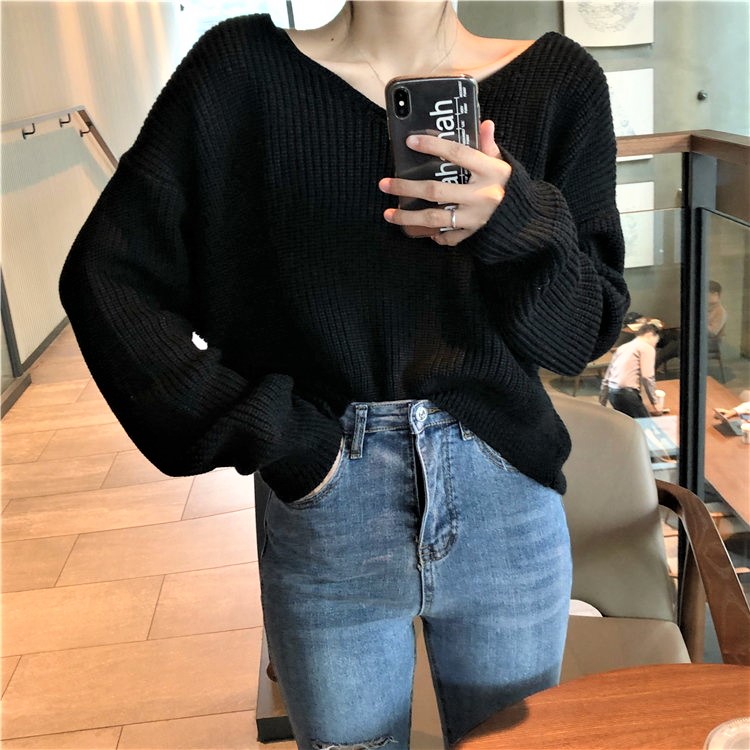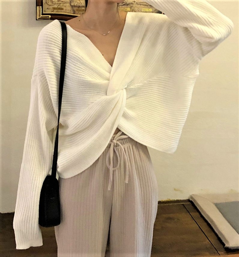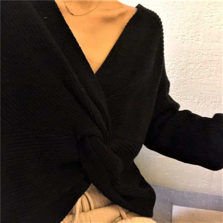 Streetwear V-Neck Bow Knot Long Sleeve Knitted Sweater Crop Pullover 90s Y2K Sexy Amazing