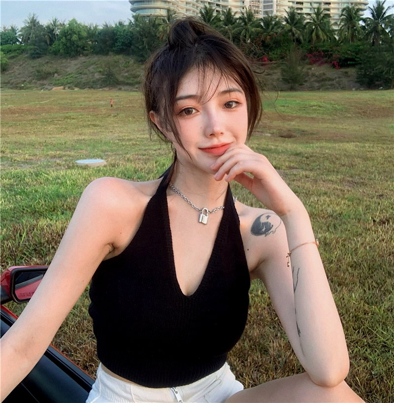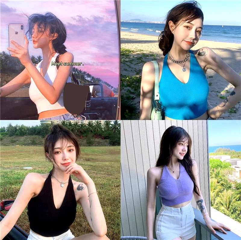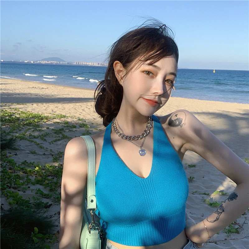 Sexy Streetwear Halter Deep V Solid Knit Crop Top 90s Y2K Party Nightclub Dating Occasion Amazing