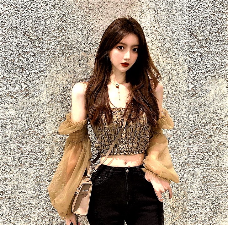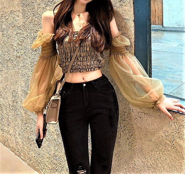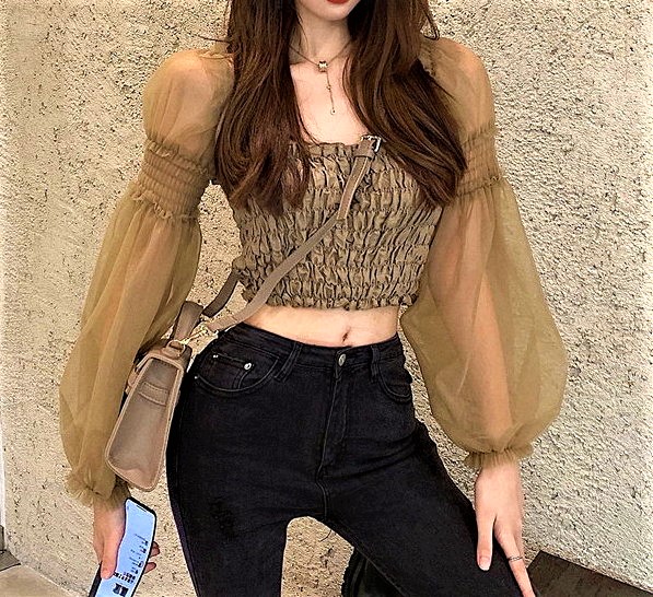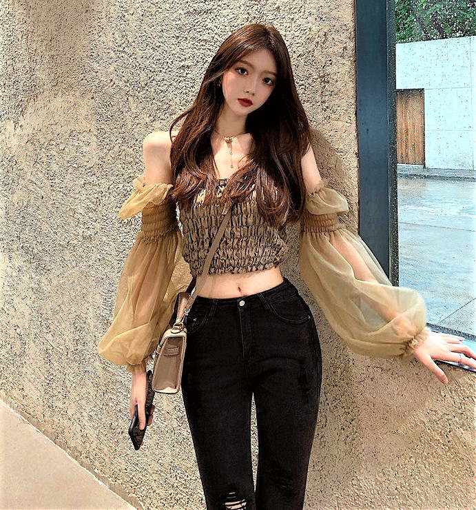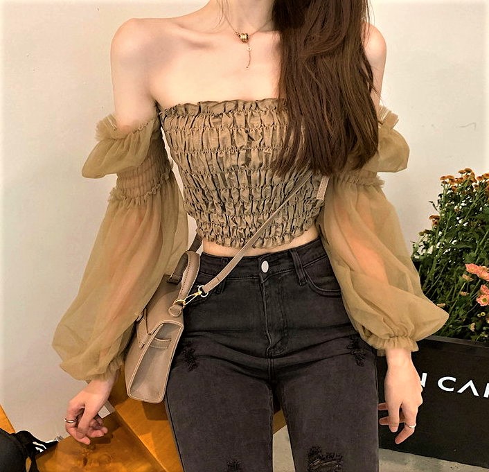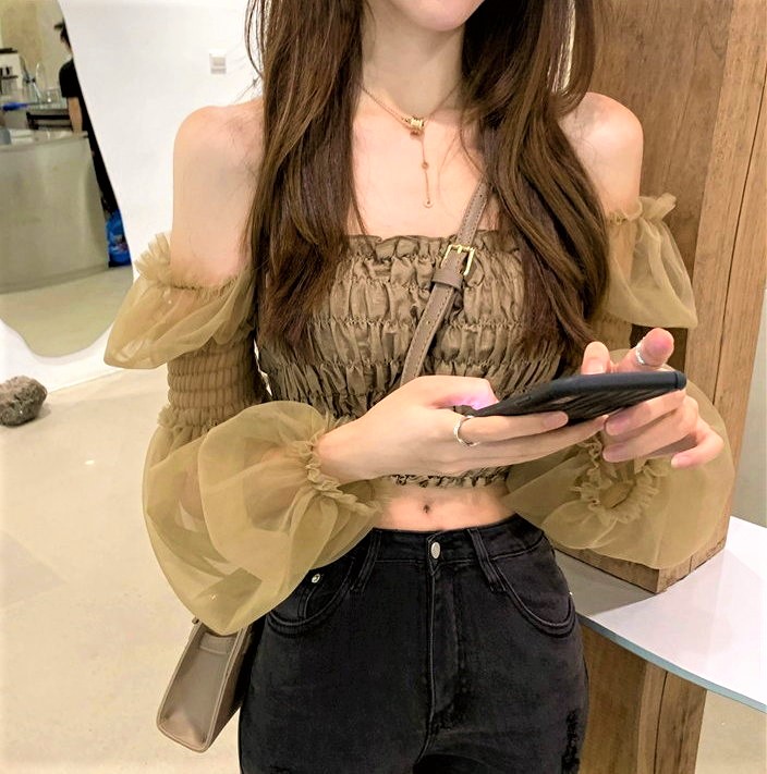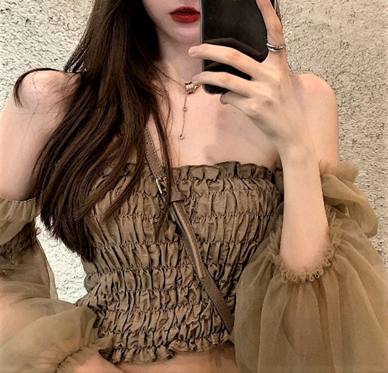 Sexy Streetwear Mesh Lace Ruffle Off Neckline Puffy Sleeve Crop Tops 90s Y2K Party Nightclub Dating Occasion Amazing