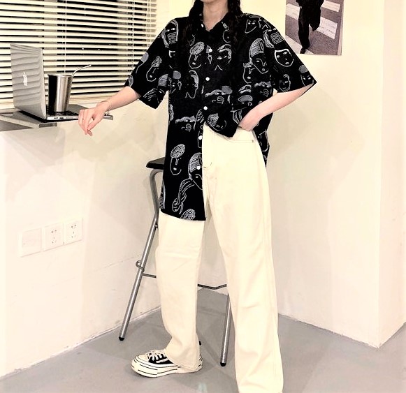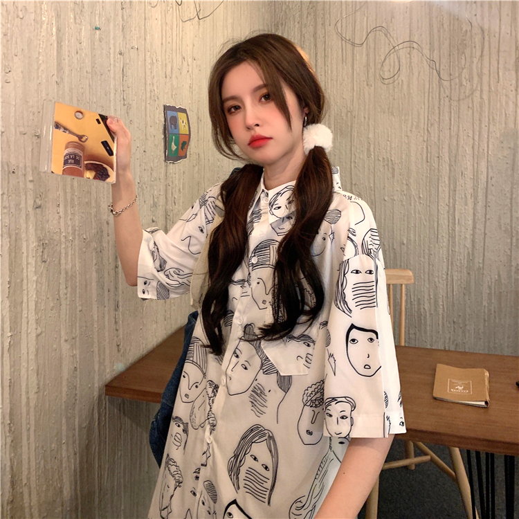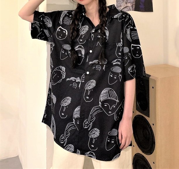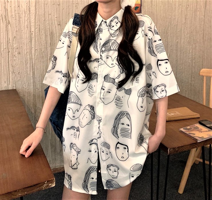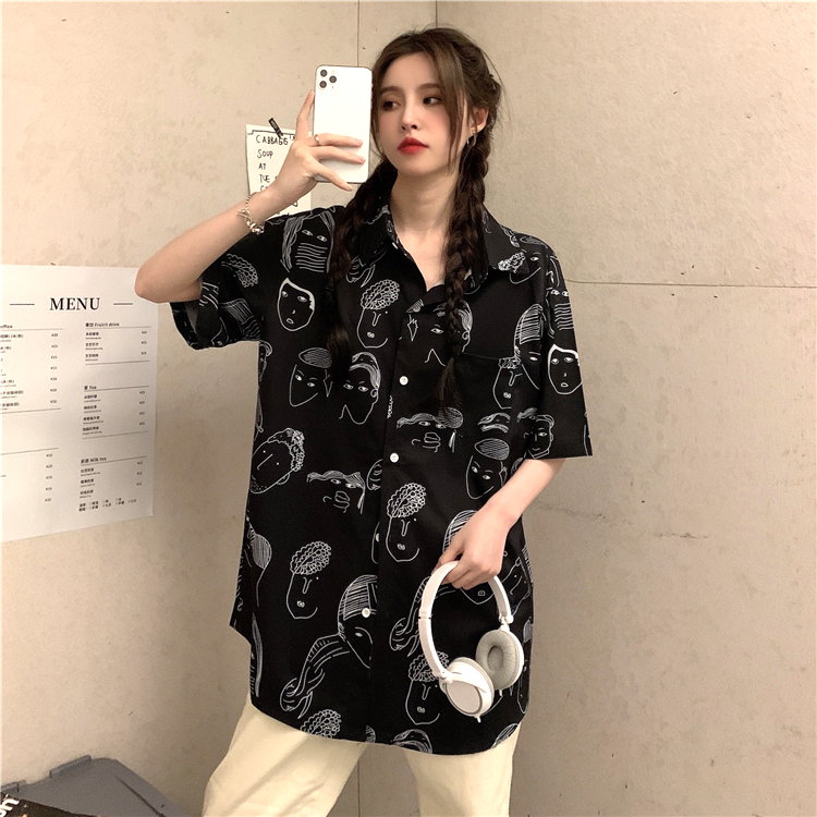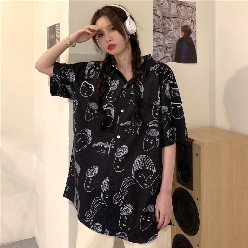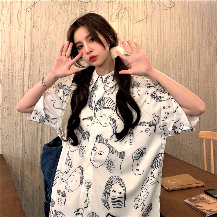 Punk Harajuku Portrait Cartoon Prints Short Sleeve Loose Hip Hop Blouse 90s Y2K Party Dancing Occasion Streetwear Amazing