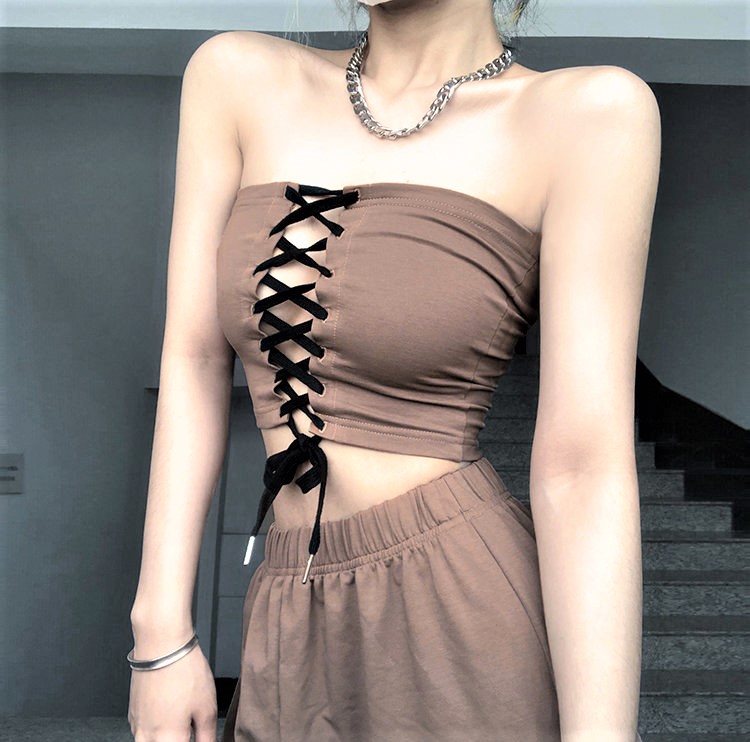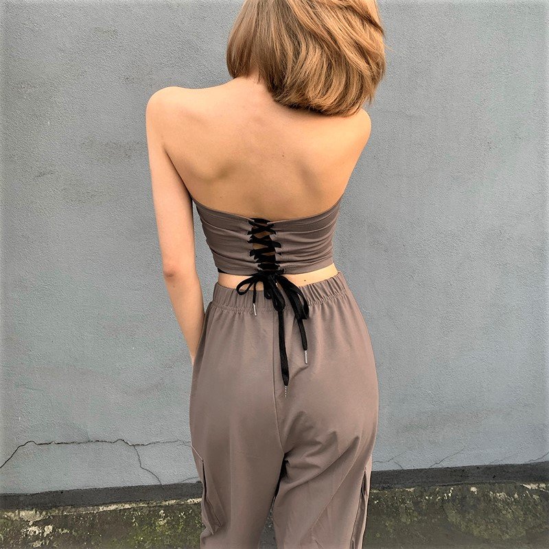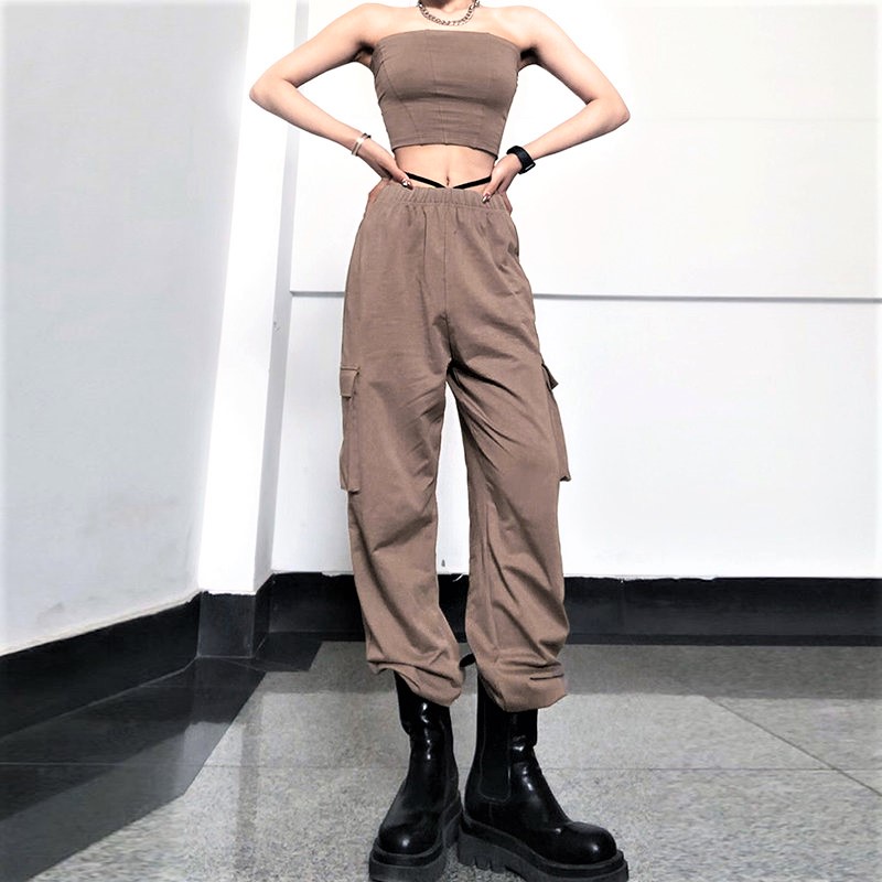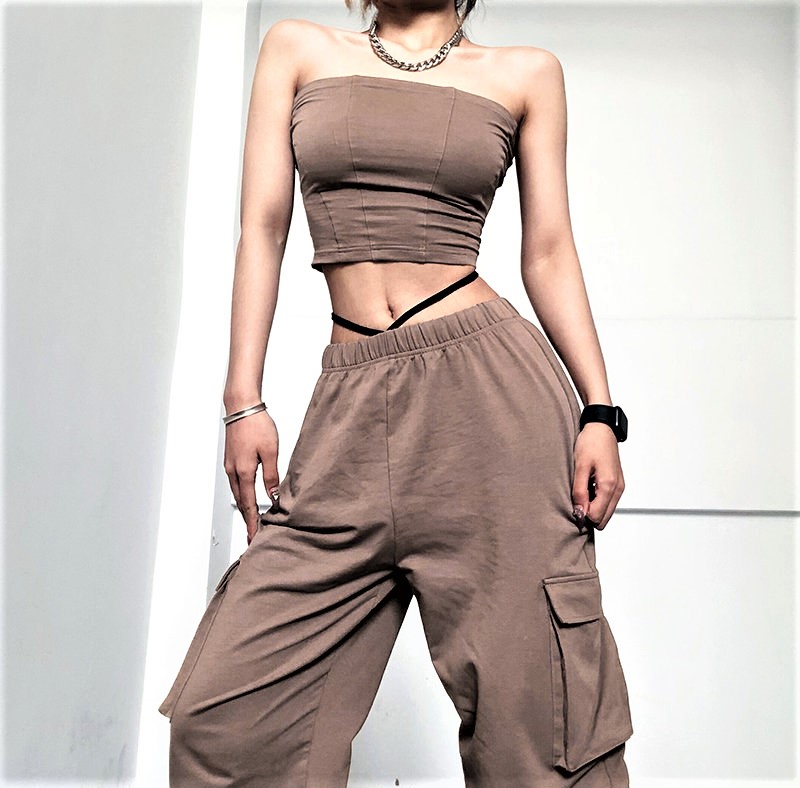 Stunning Tunic Strapy Across Slinky Crop Tops With Hiphop Wide Leg Pockets Cargo Stylish Trousers 90s Y2K Streetwear Party Occasion Anniversary Event~Wow~Bling