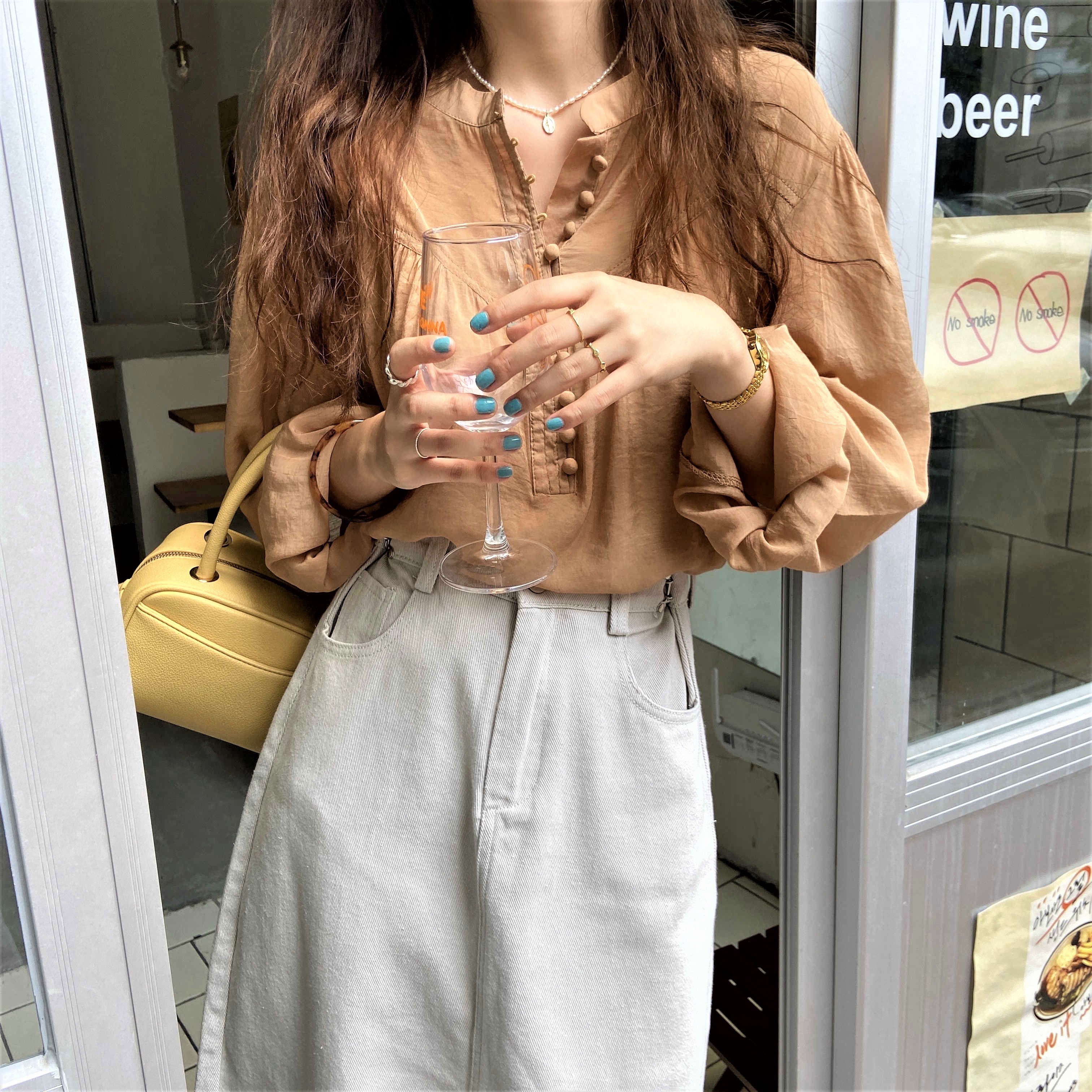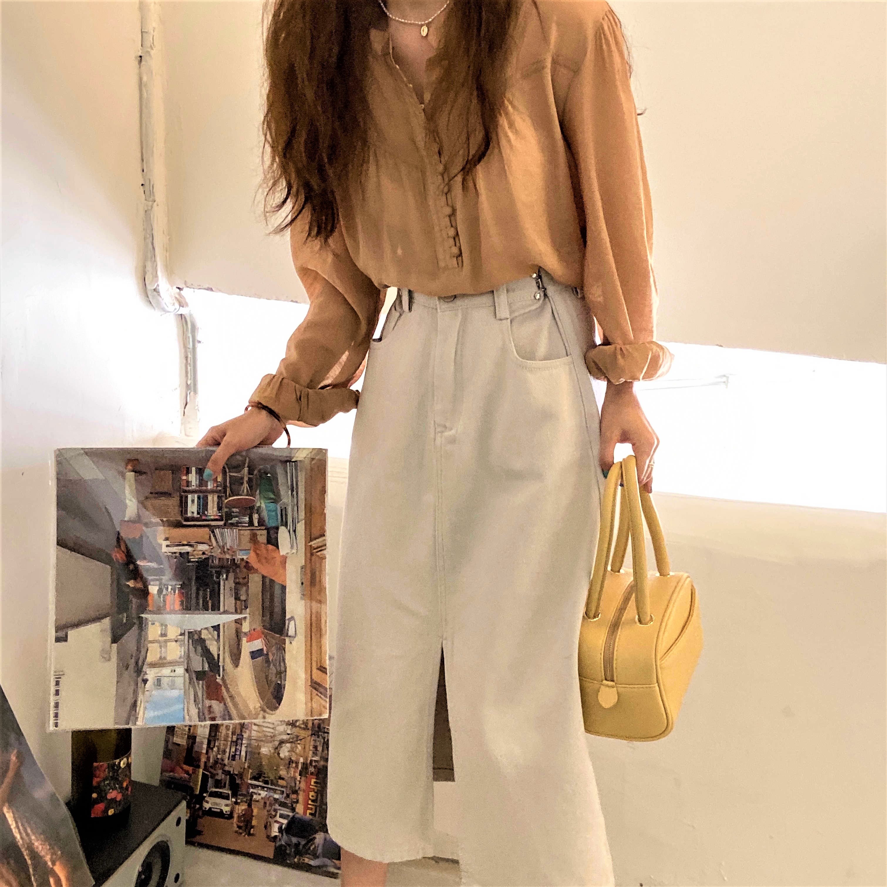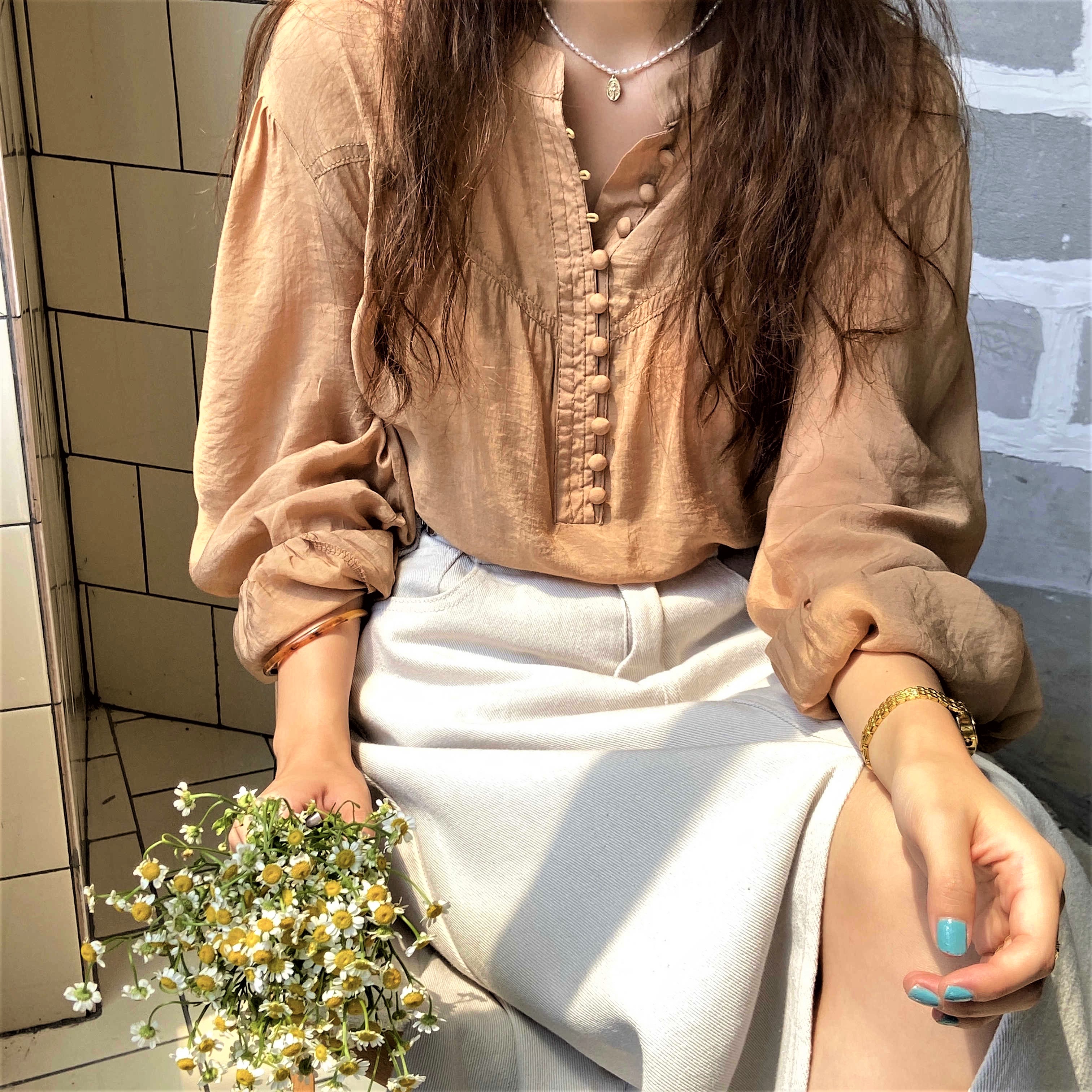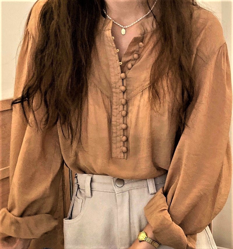 Gorgeous Classic Round Neck Eye Hooks Buttons Fastening Front Half Opening Puffy Ruffle Lantern Long Sleeves Flattering Retro Ruched Blouse 90s Y2K Amazing