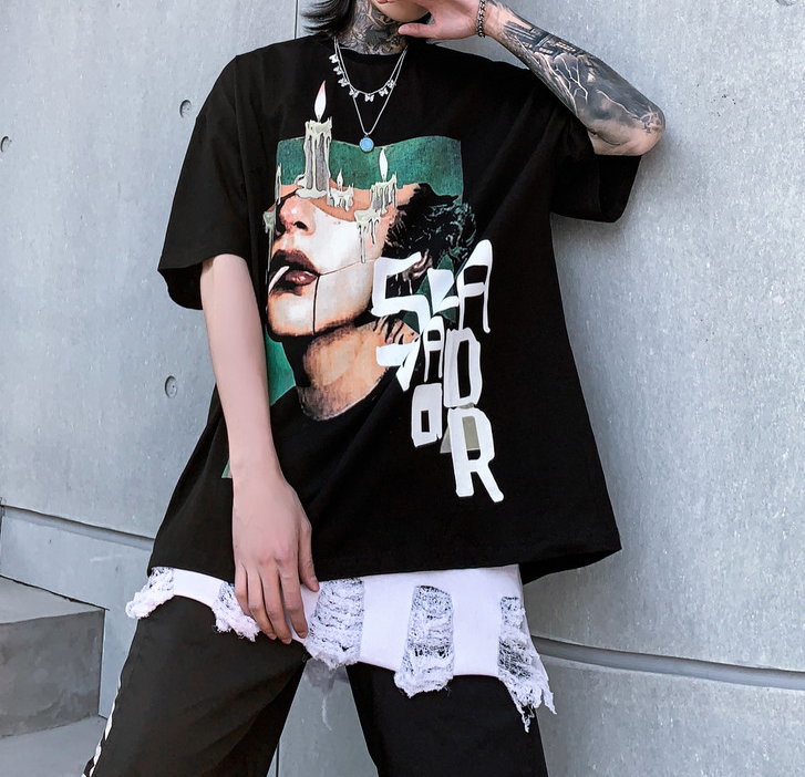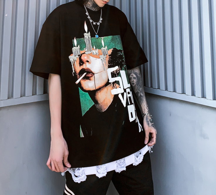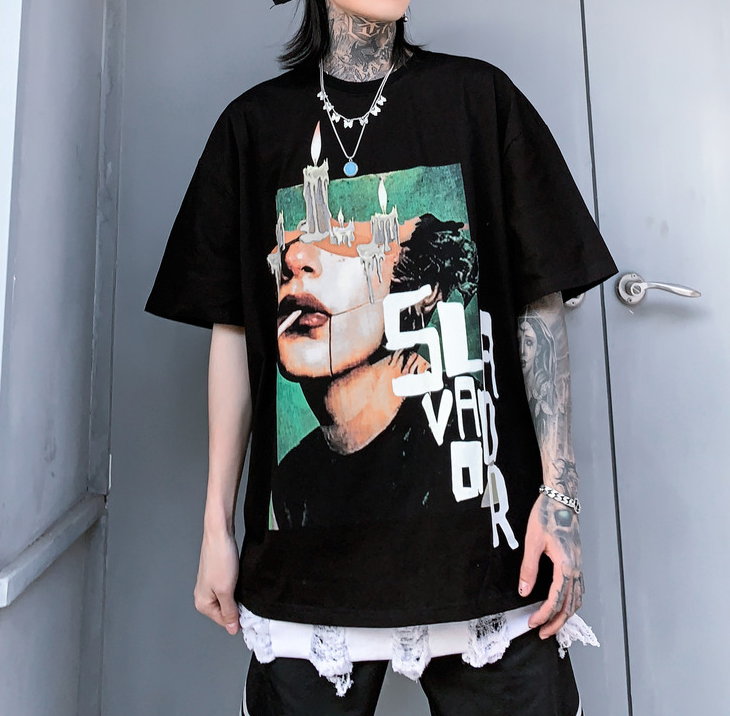 Rare Adorable Punk StreetRebels Graphic Paint Oversized Hiphop Coolest Tops 2000s Y2K Party Nightclub Amazing