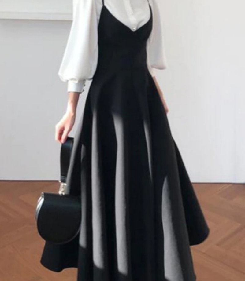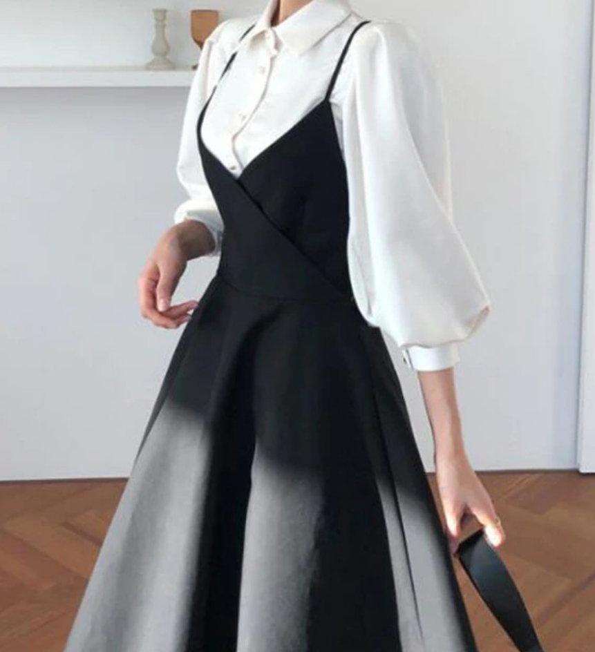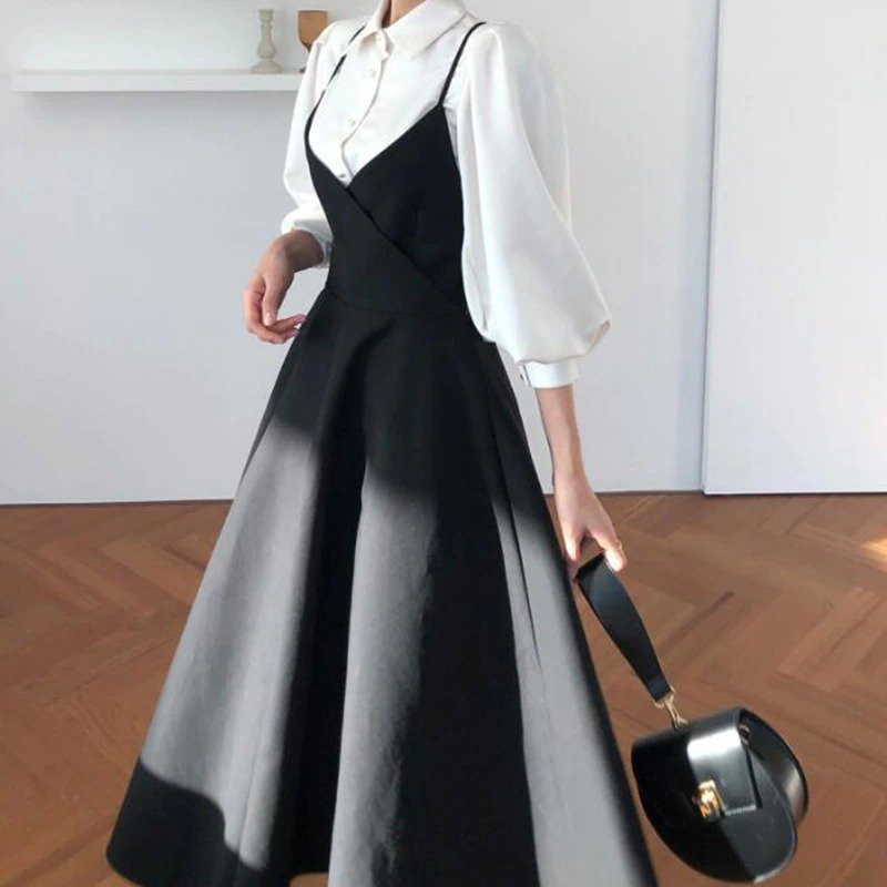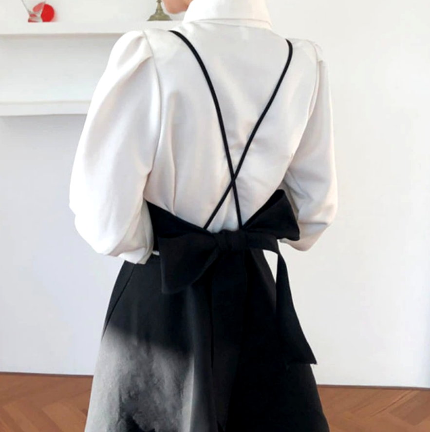 Vintage French Retro Single Breasted Lantern Sleeve Shirt Set+Camisole Bow Pleated Solid Dresses Y2K 90s Party Event Dance Amazing
