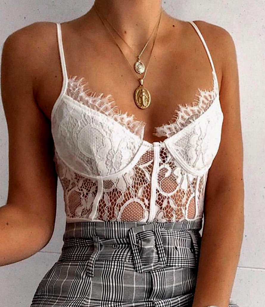 Sexy Hollow Lace Embroidery Bra Super Push Up Backless Slinky Cami Jumpsuit Y2K 90s Party Barclub Dance Streetwear Amazing