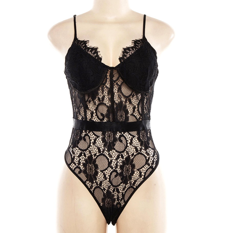Sexy Hollow Lace Embroidery Bra Super Push Up Backless Slinky Cami Jumpsuit