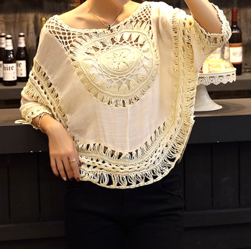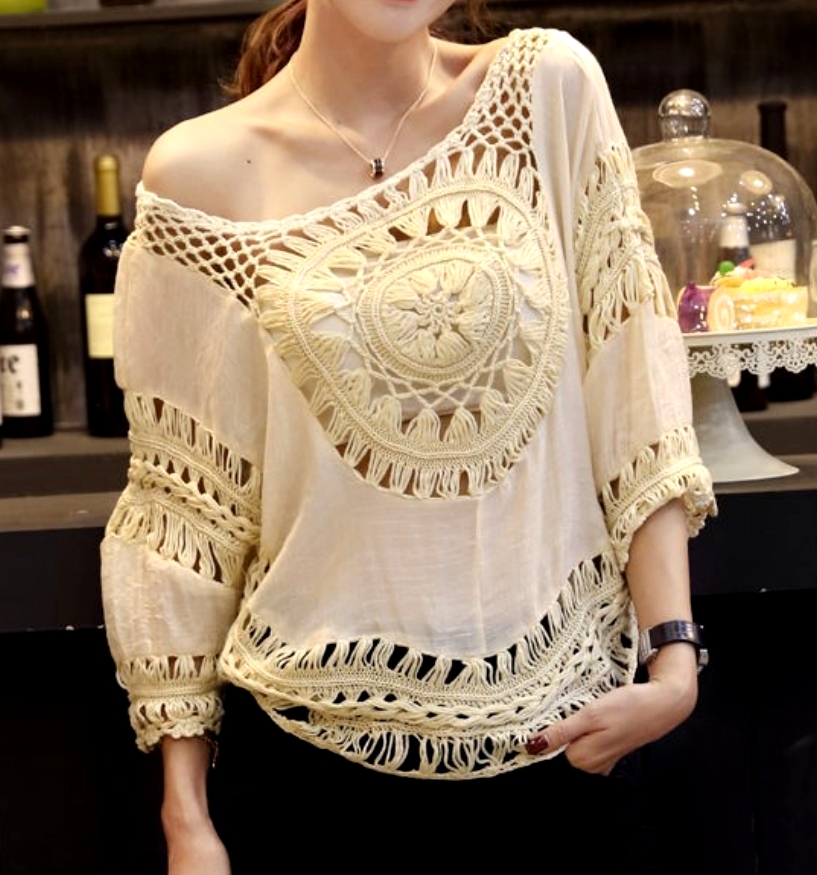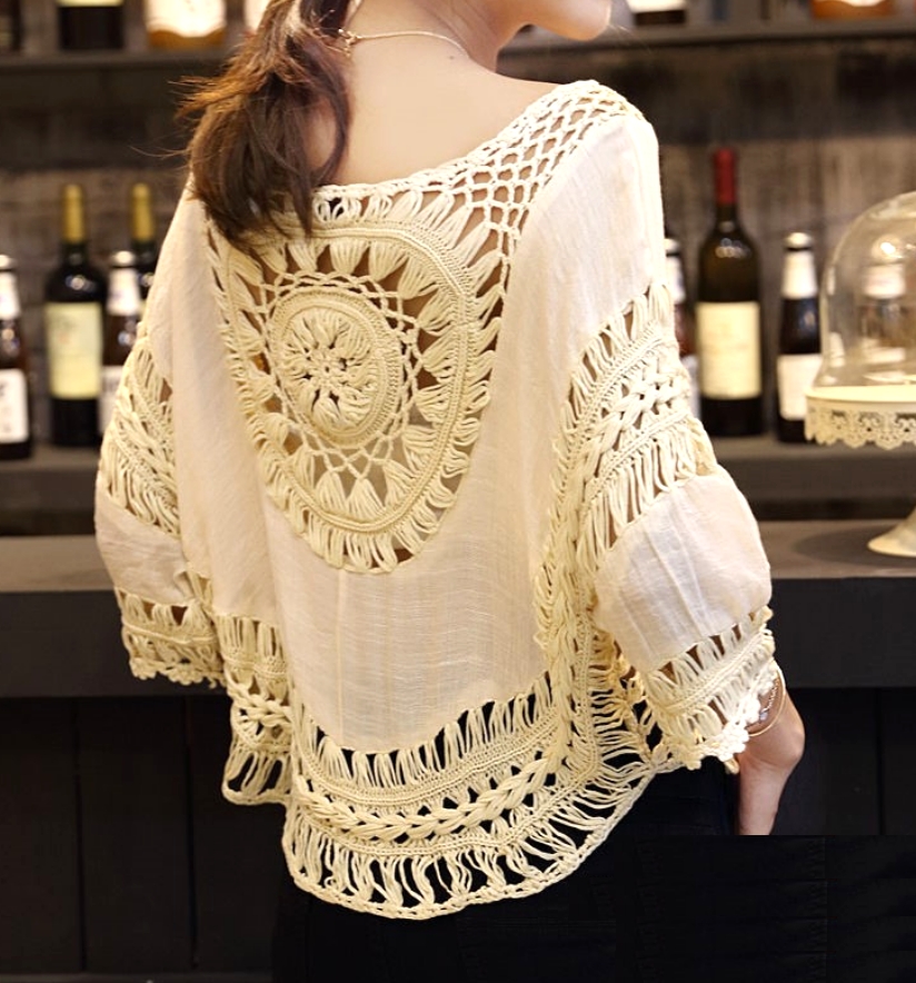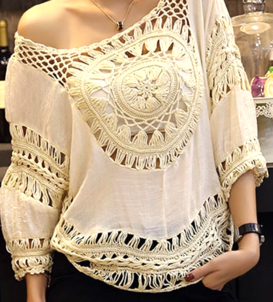 Stunning Italia Patchwork Crocheted Hollow Embroidery Oversize Tops Blouse Y2K Streetwear Party Unique Fashion Amazing