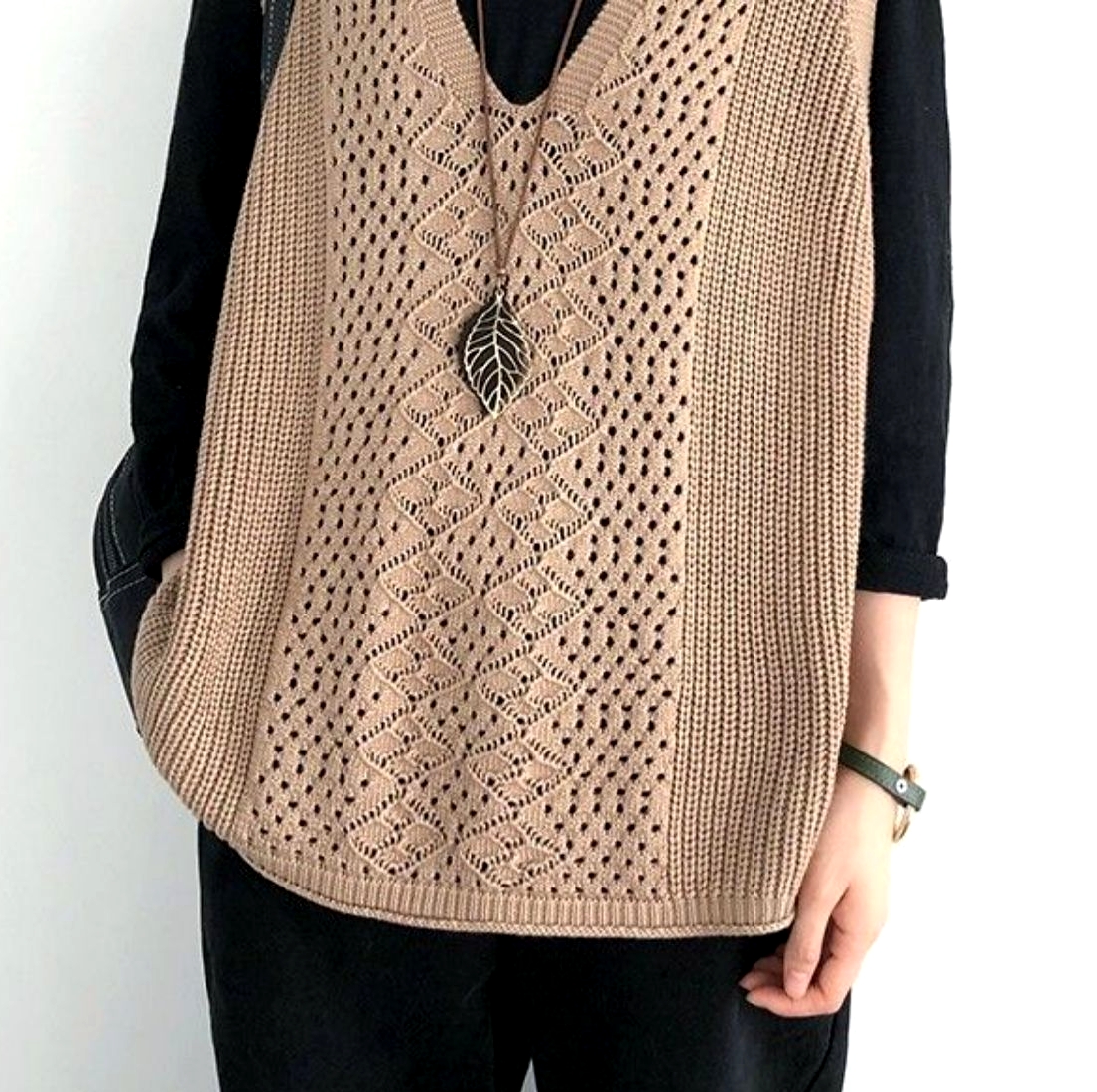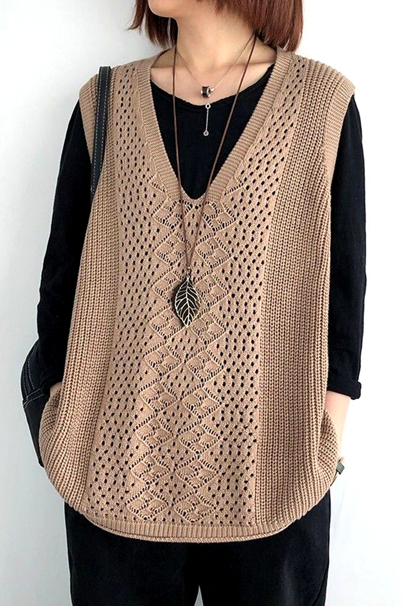 Stunning Hippie Oversize Crocheted Thin Knit V-Neck Sleevesless Punk Vest Y2K Streetwear Party Amazing