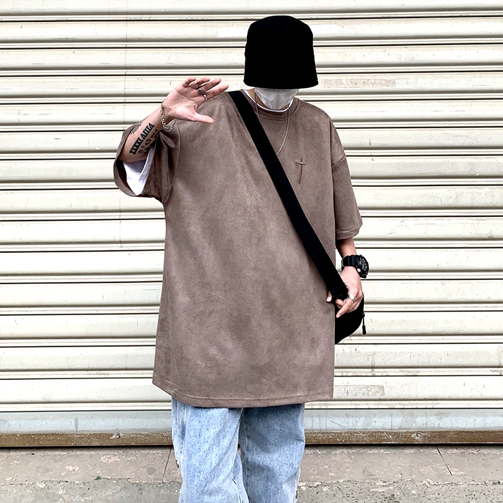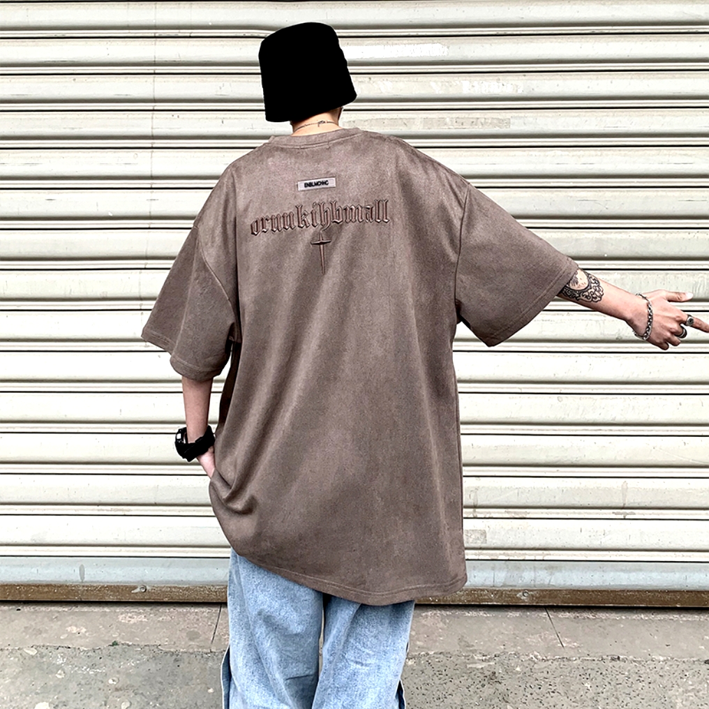Stunning Punk Suede Embroidery Oversize Outfit Rave Tee Tops Streetwear Y2K Ootdstyle For Women And Men Amazing