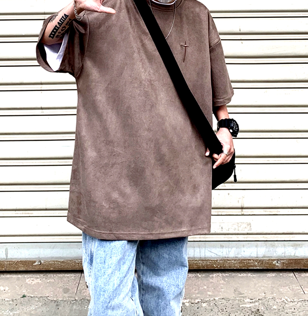 Stunning Punk Suede Oversize Outfit Rave Tee Tops Streetwear Y2K Ootdstyle Amazing