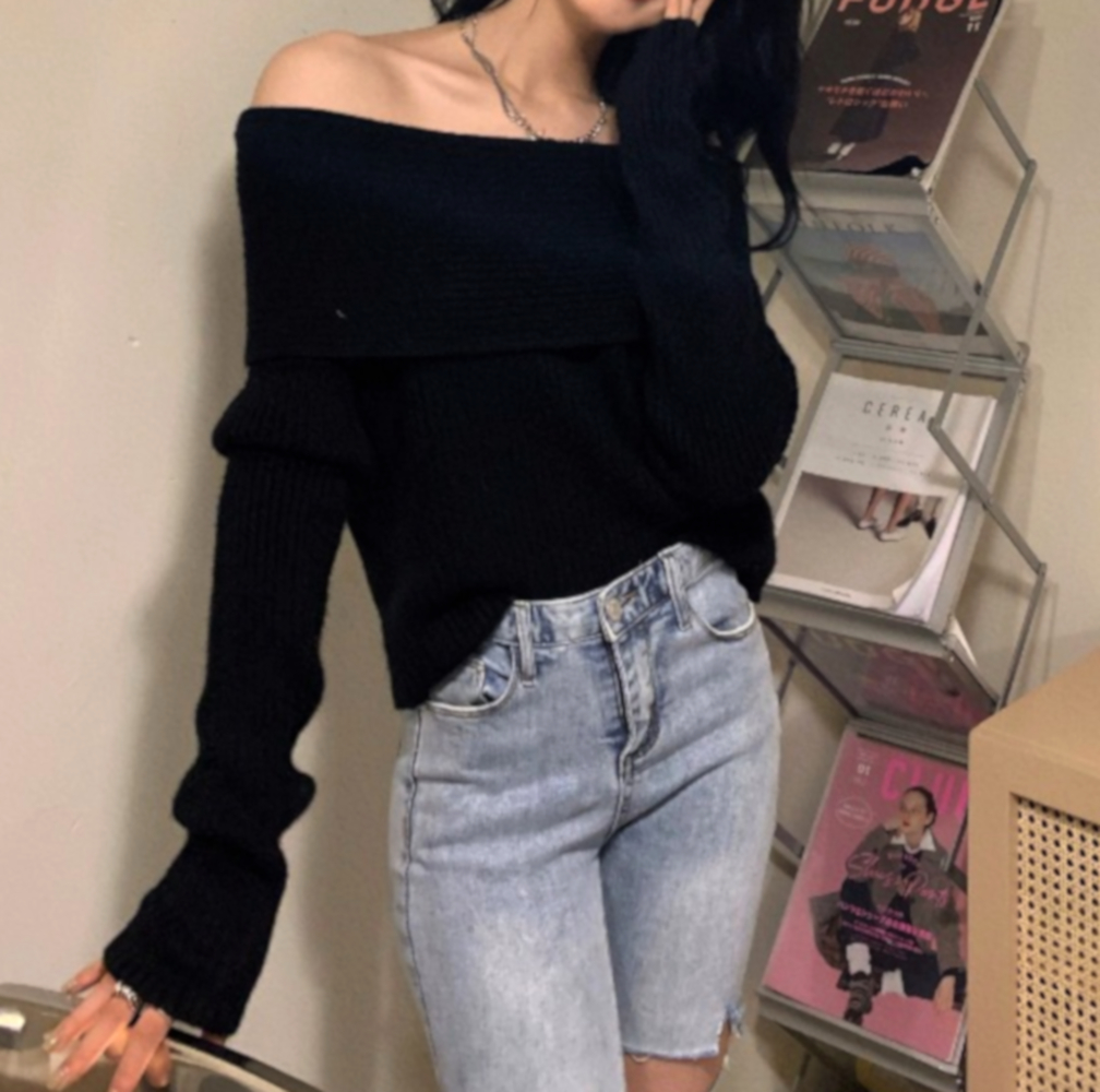 Stunning Punk Rave Off Shoulder Flare Sleeves Oversize Sweater Pullover Tops Ootdstyle Amazing