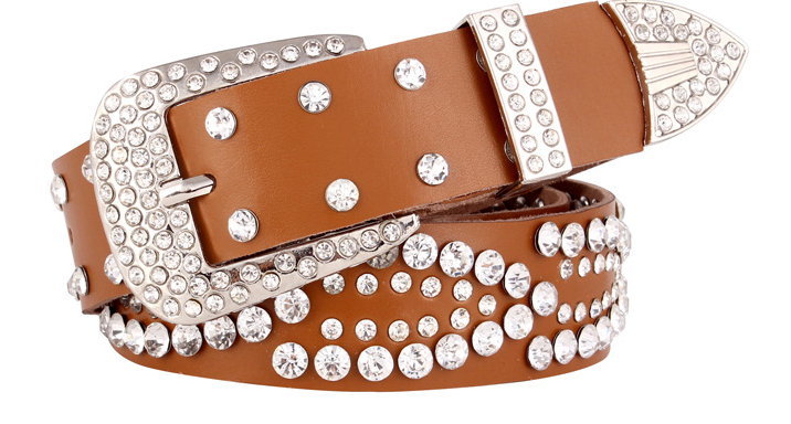 FREE SHIP! Stunning Punk Shine Diamond Leather Belt Sparkle Unique