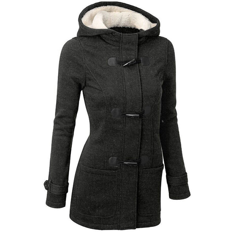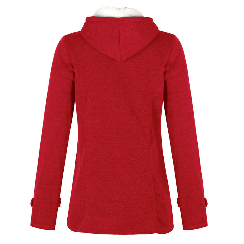 Vintage Women Hoodie Drawstring Button Zipper Fleece Jacket
