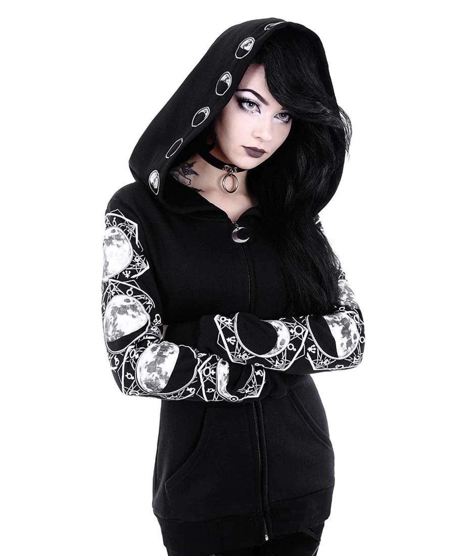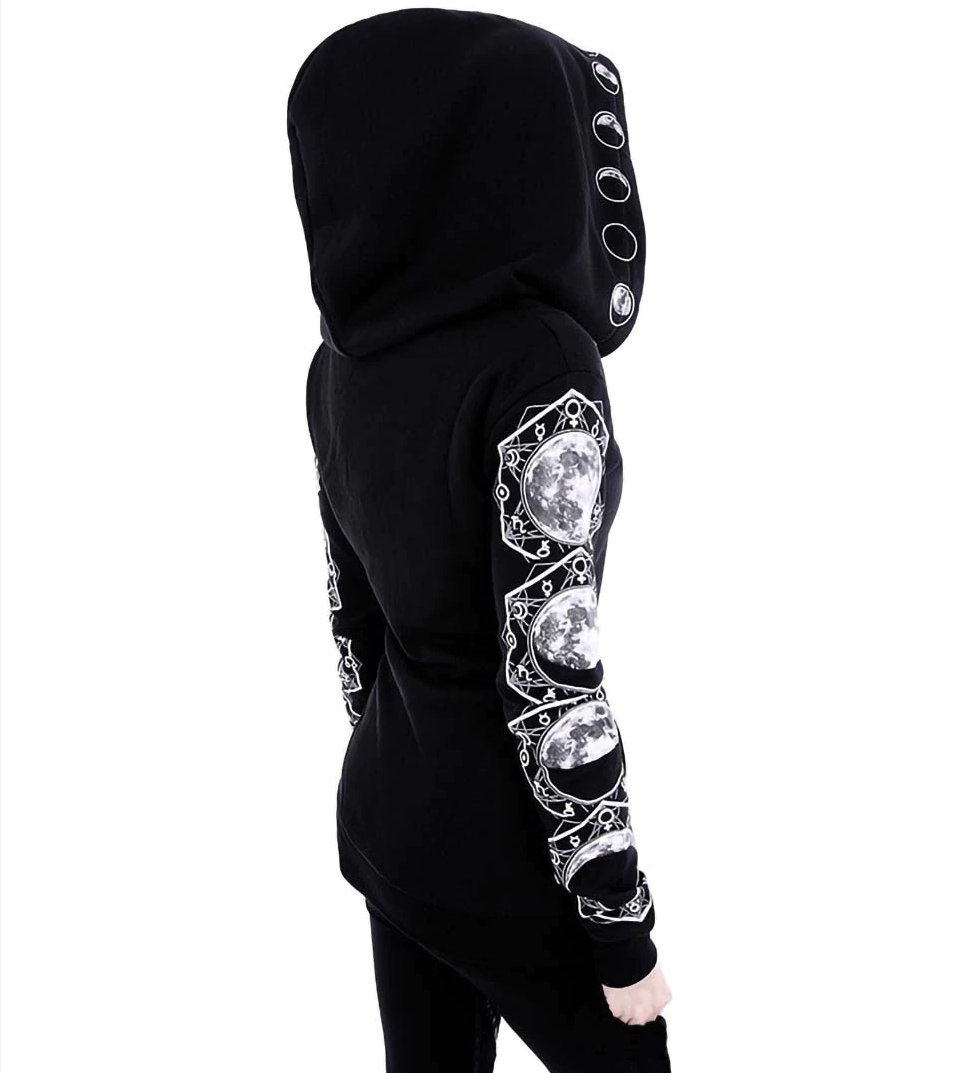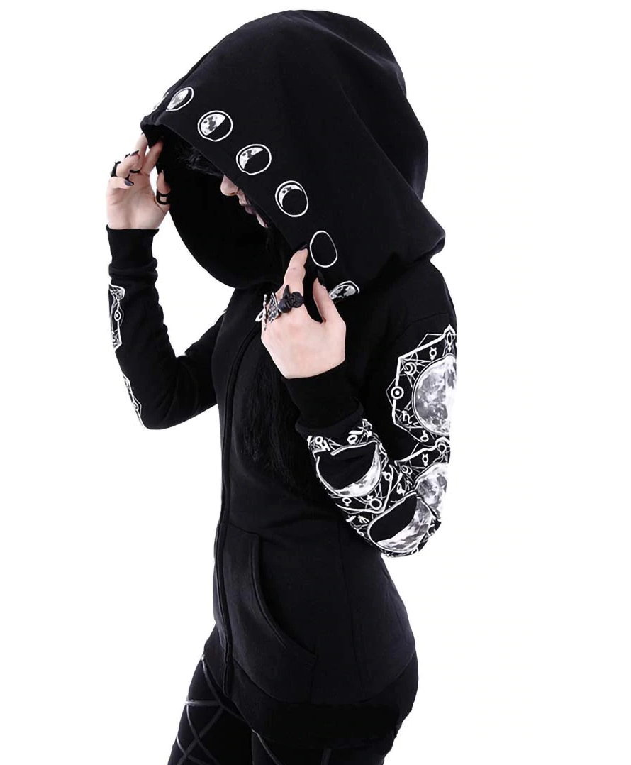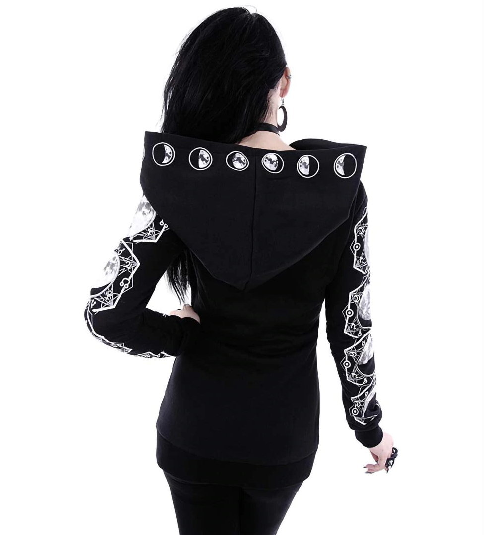 Gothic Punk Print Long Sleeve Zipper Black Hoodies Sweatshirts Hooded Jacket