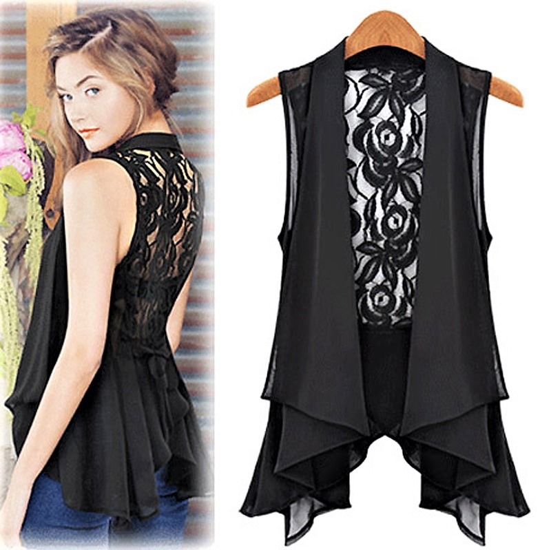 Stunning Chiffon Sleeveless Hollow Crocheted Back Floral Embroidery Irregular Loose Outerwear 90s Y2K Party Nightclub Dating Occasion Amazing