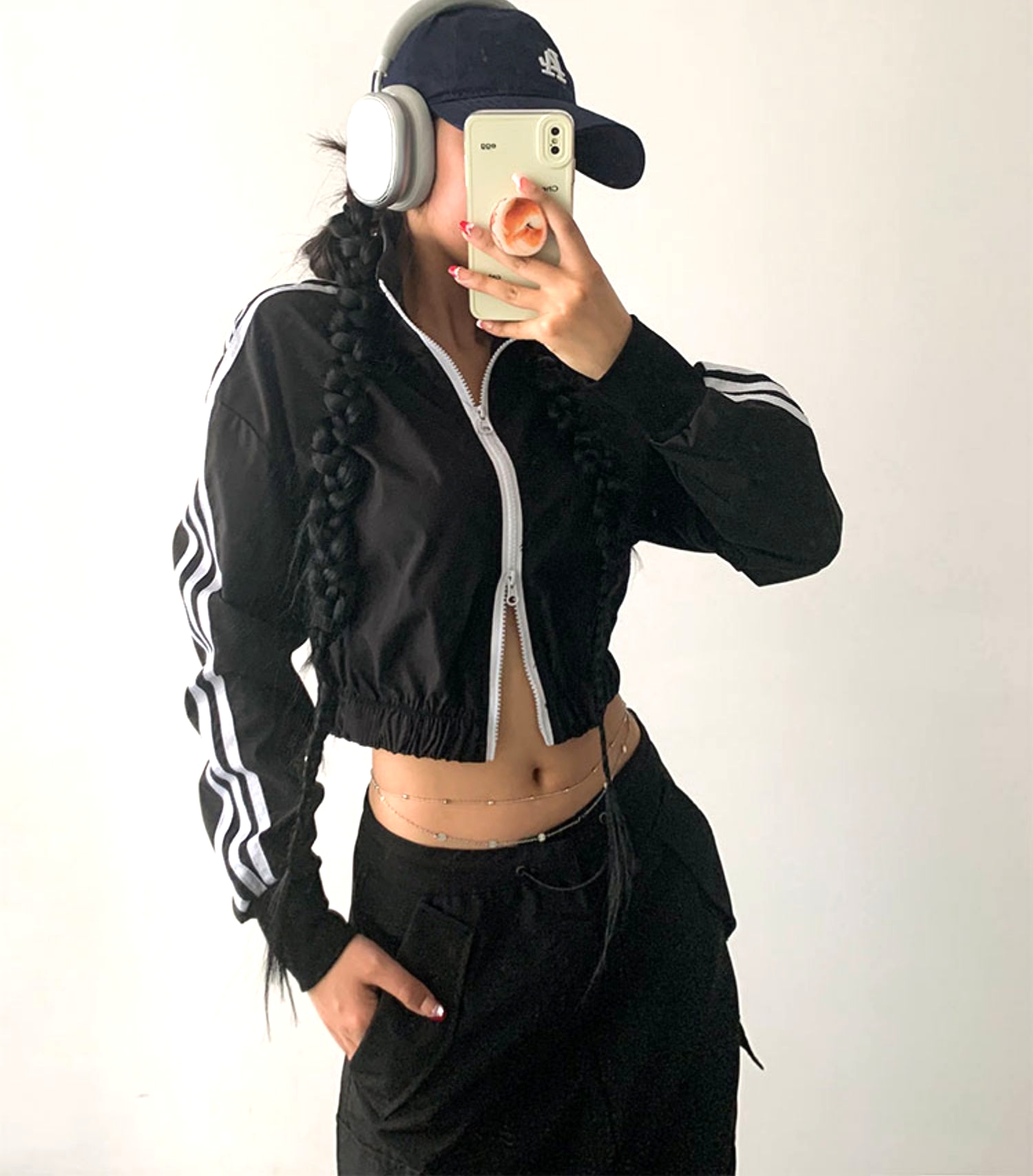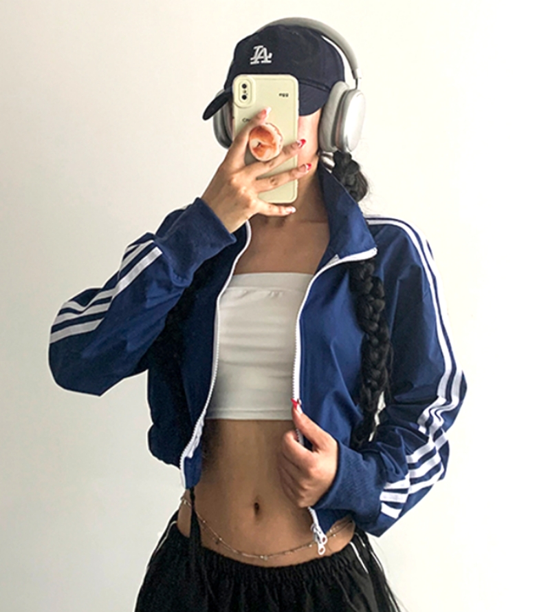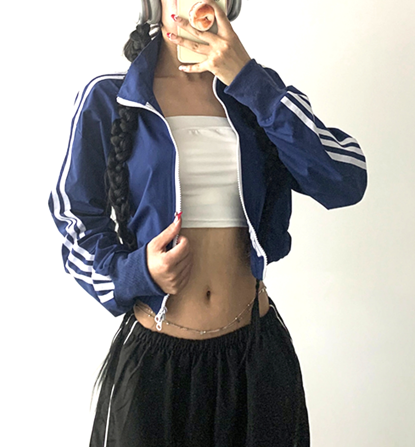 Stunning Punk Hippie Stripe Lines Embellished Zipper Short Jacket Party Sport Girly Rock Style Y2K 90s Streetwear Amazing