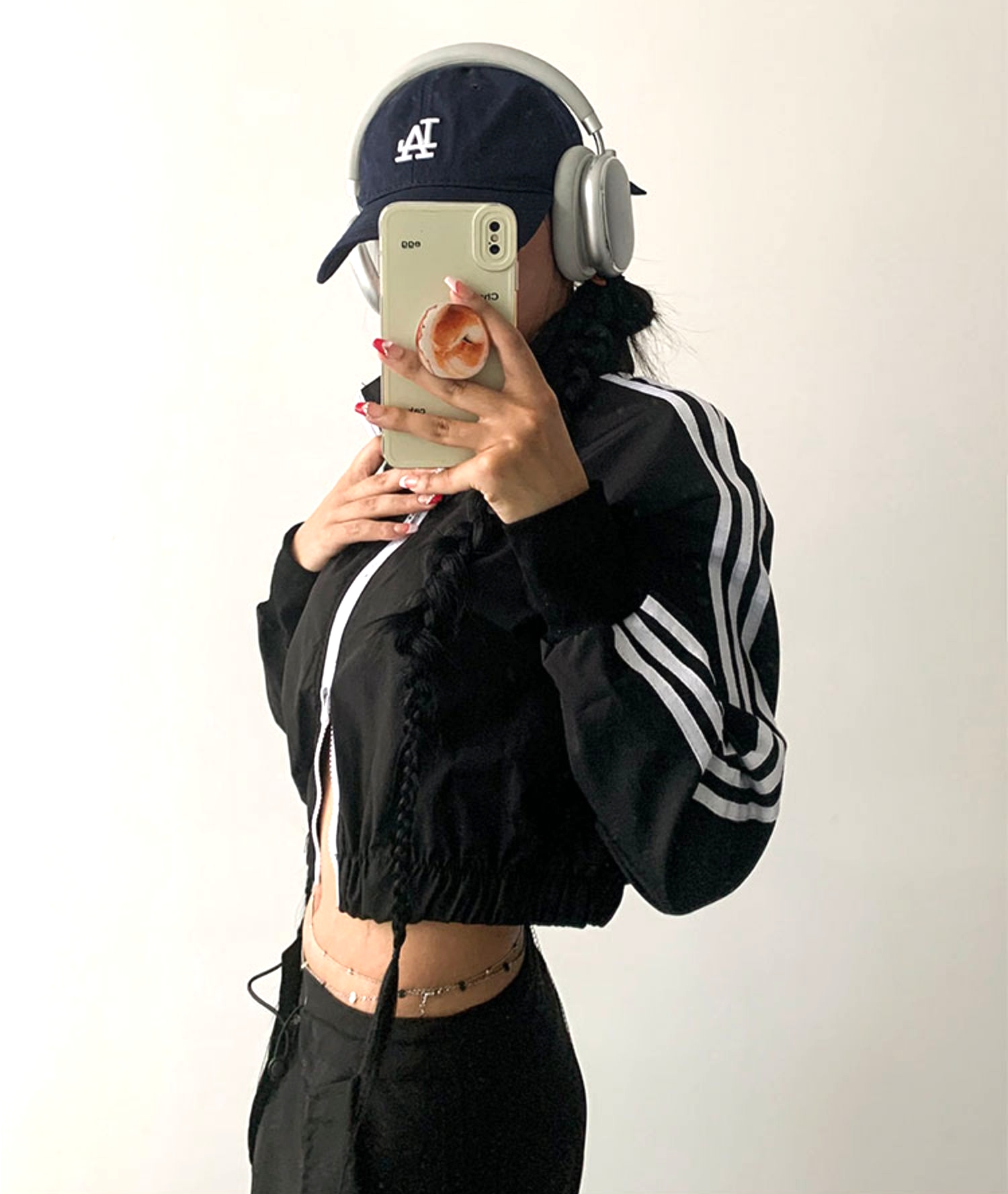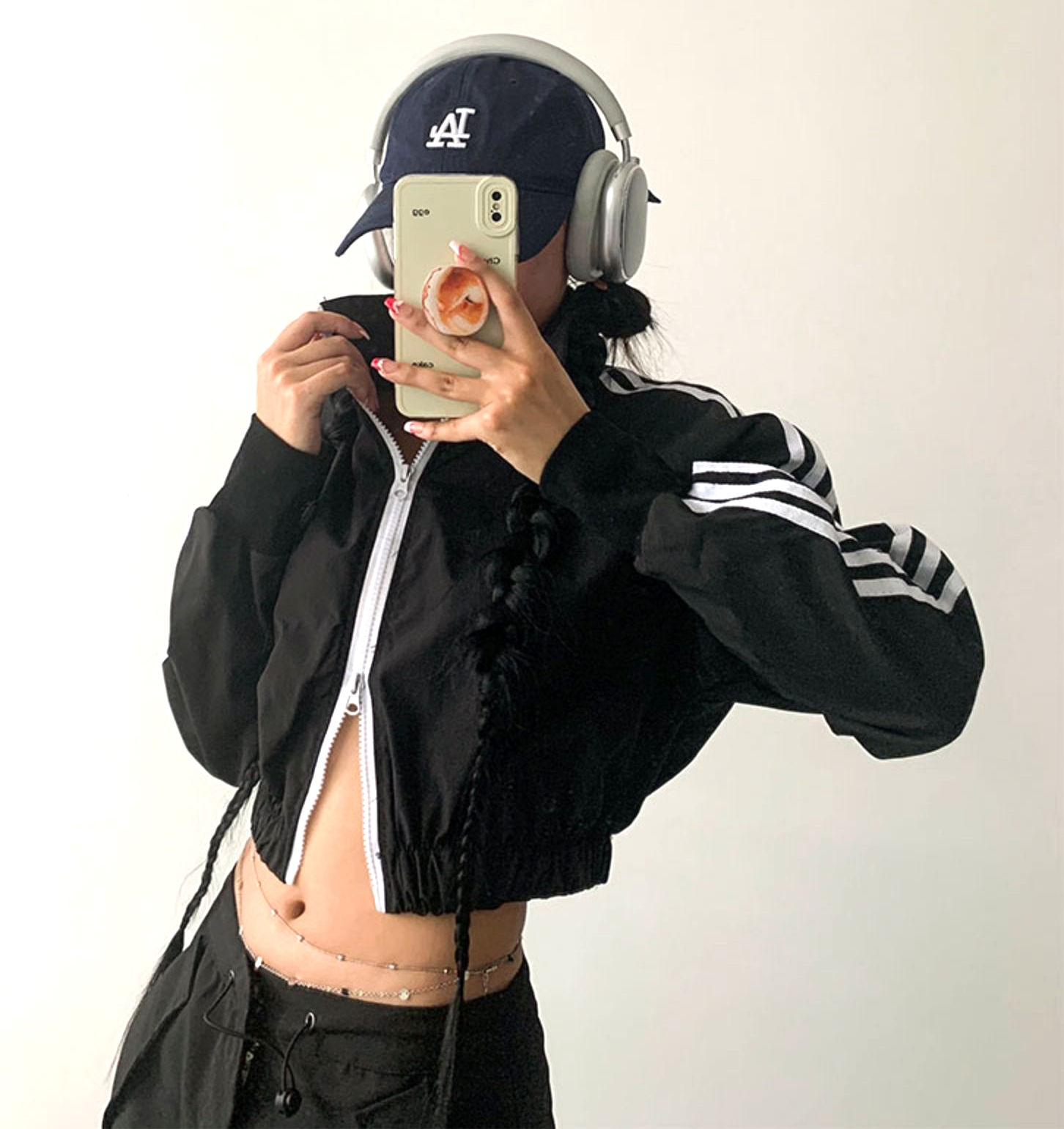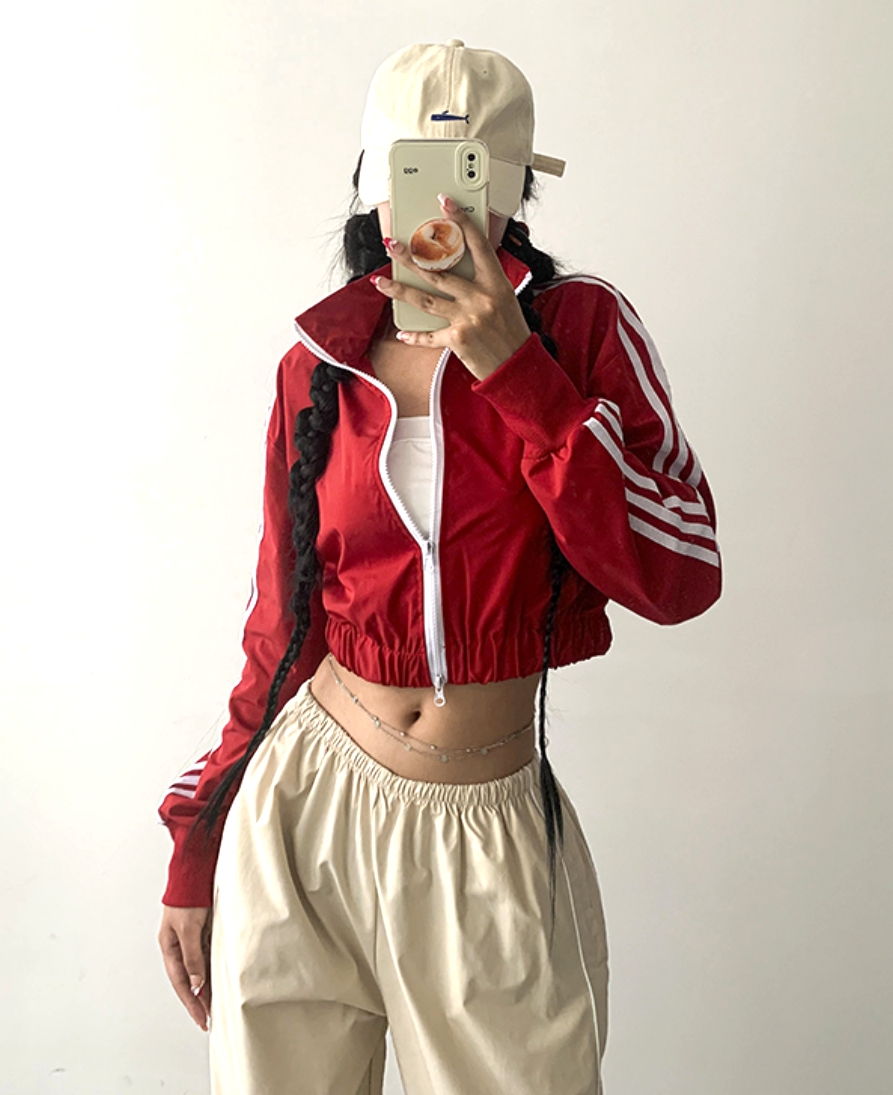 Stunning Punk Hippie Stripe Lines Embellished Zipper Short Jacket Party Sport Girly Rock Style Y2K 90s Streetwear Amazing