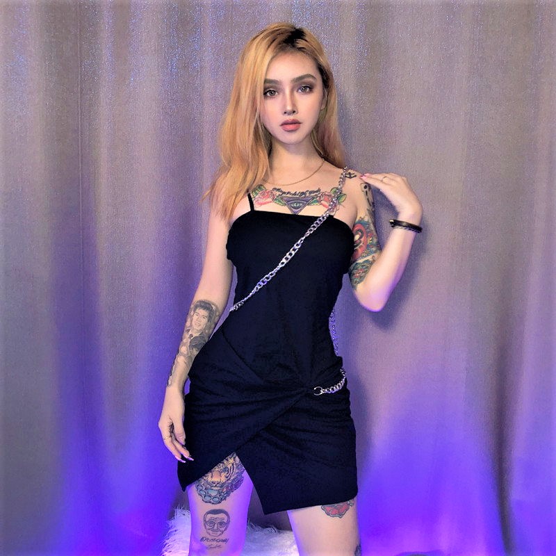 Sexy Irregular Spaghetti Off Shoulder Chain Trimming Details Mini Dress Streetwear 90s Y2K Party Nightclub Dating Occasion Amazing