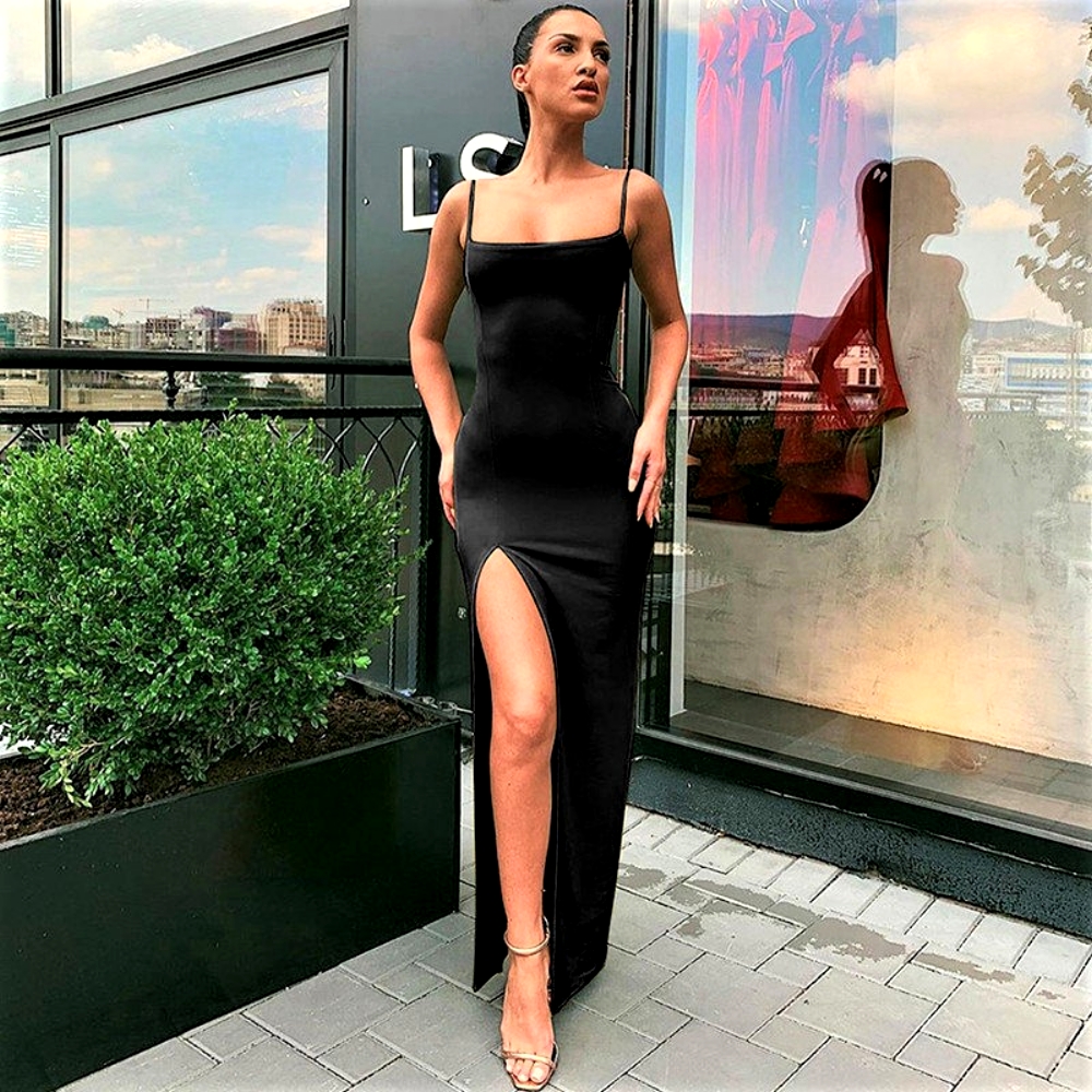 Elegant Sexy Shoulderless Spaghetti Funky Punk Side High Split Long Dress 90s Y2K Party Nightclub Event Amazing