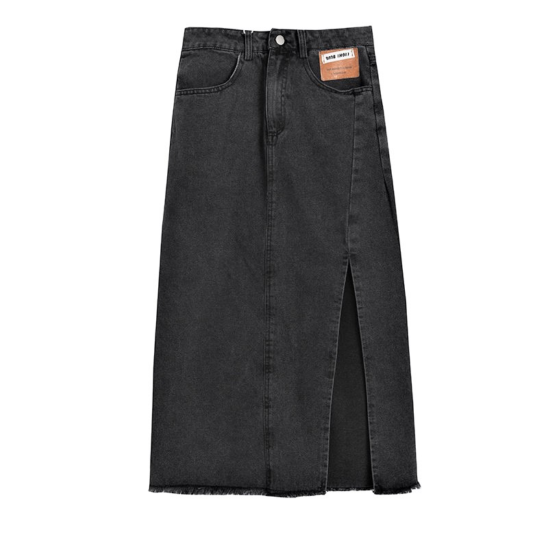 Retro Vintage Ripped Hem High Waist Wash Demin Pencil High Slit Skirt 90s Y2K Party Nightclub Dating Occasion Amazing