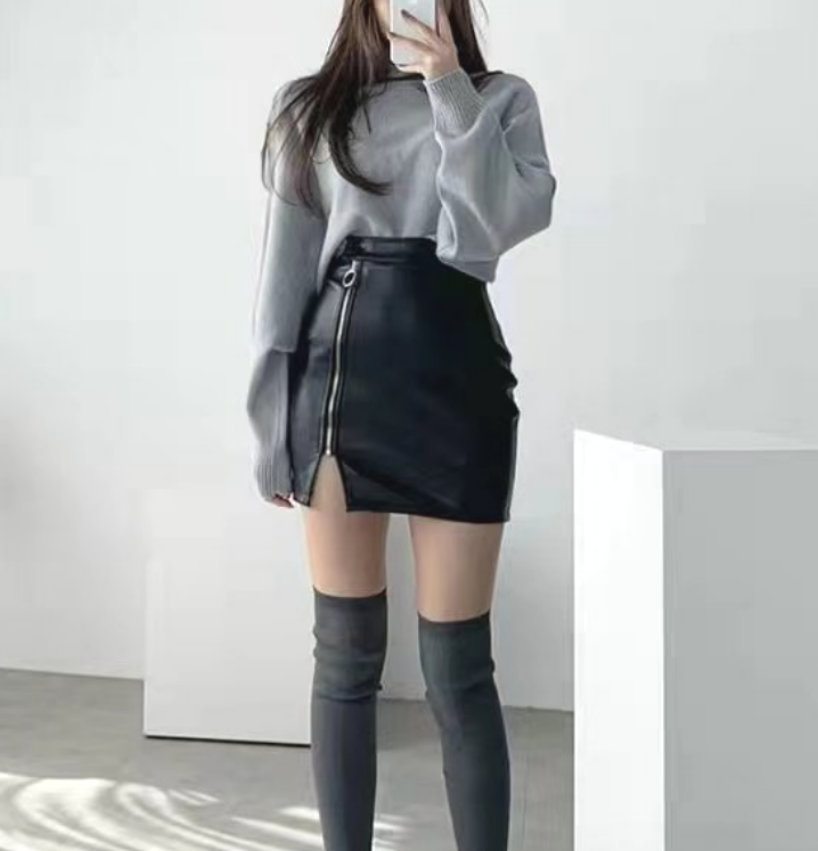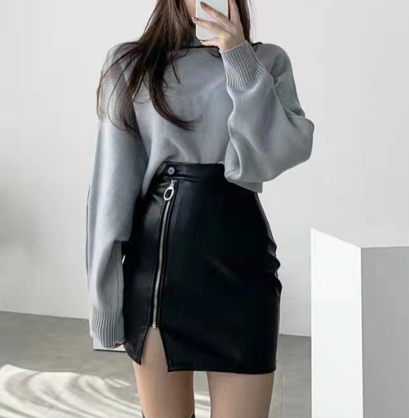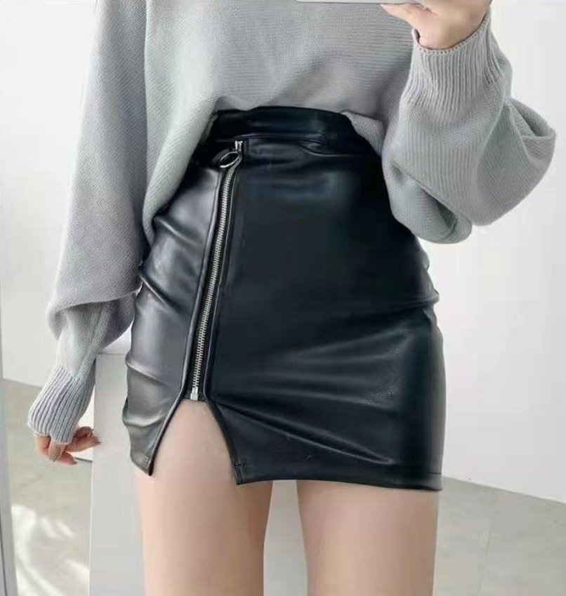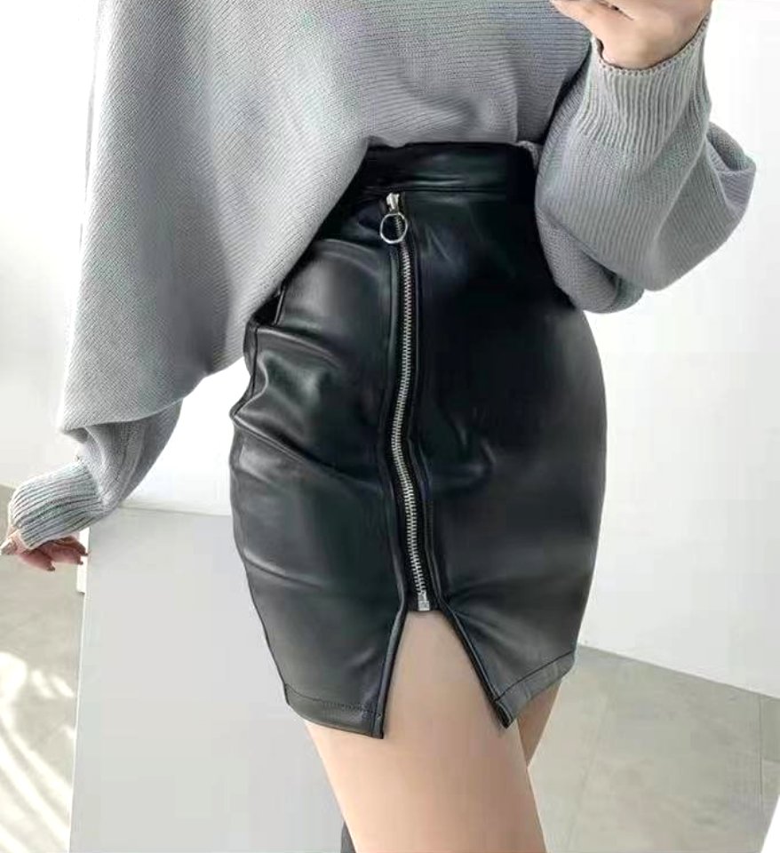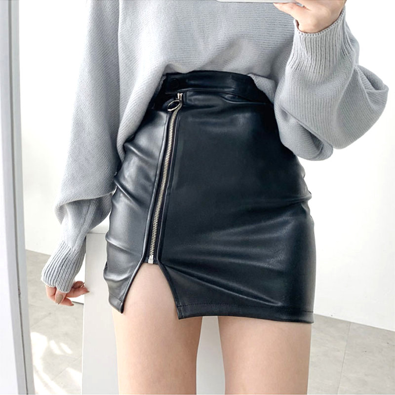 Vintage Sexy Faux Leather High Waist Full Zipper Side Slit Slinky Mini Skirt Y2K 90s Party Dance Streetwear Amazing