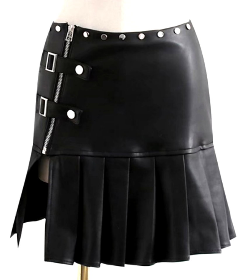 Sexy Punk Faux Leather Side Slit Buckle Strap Zipper Pleated Mini Skirt Y2K 90s Streetwear Party Dance Amazing