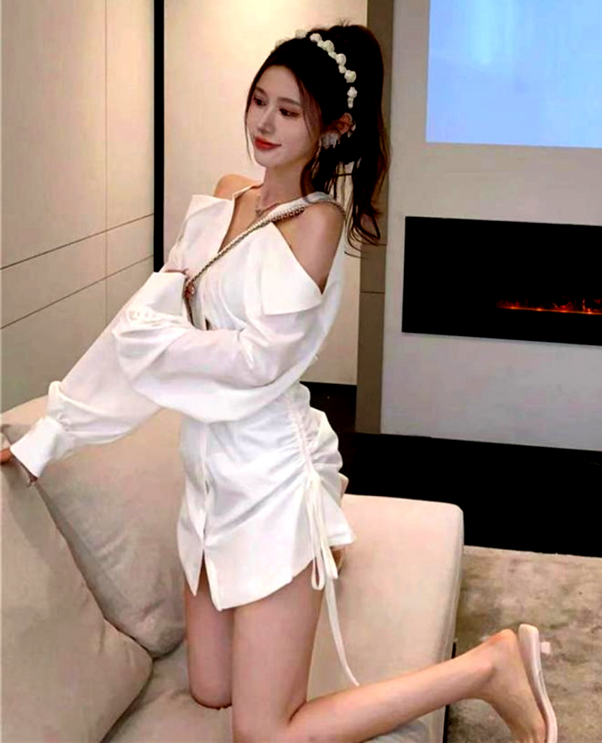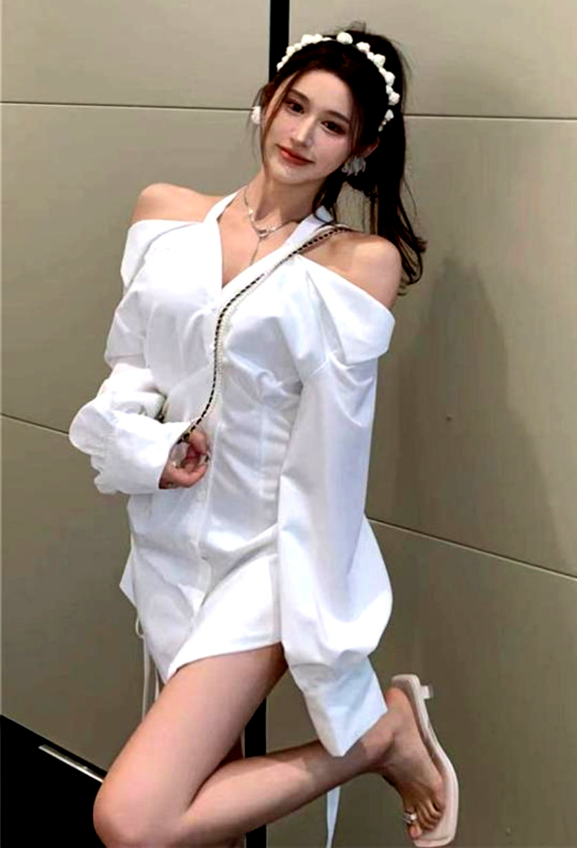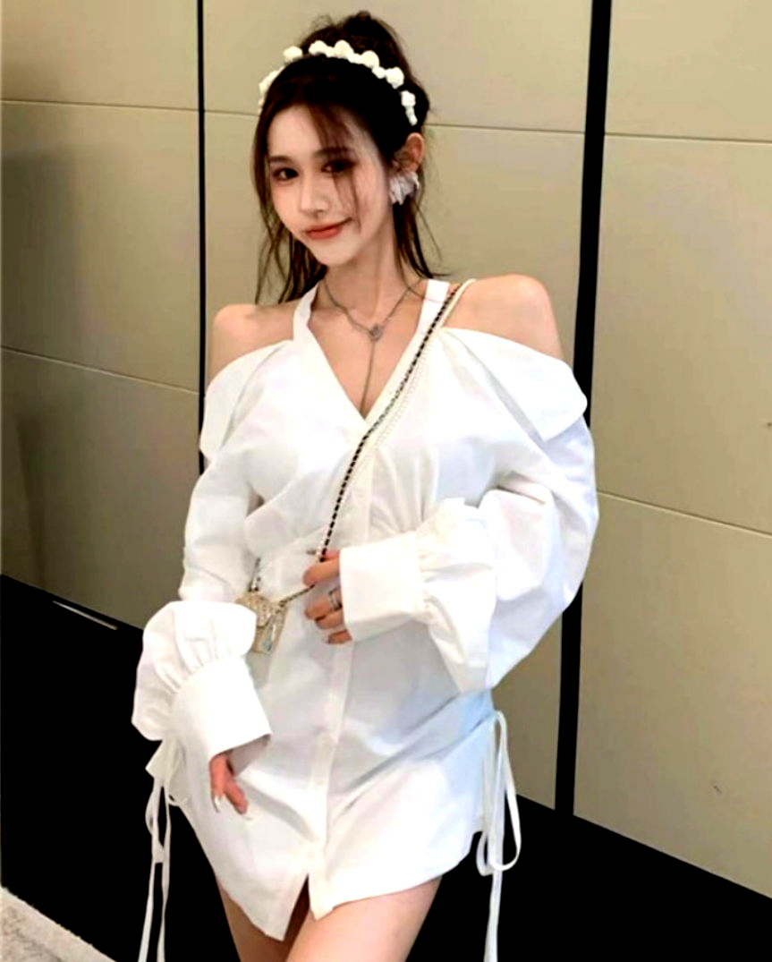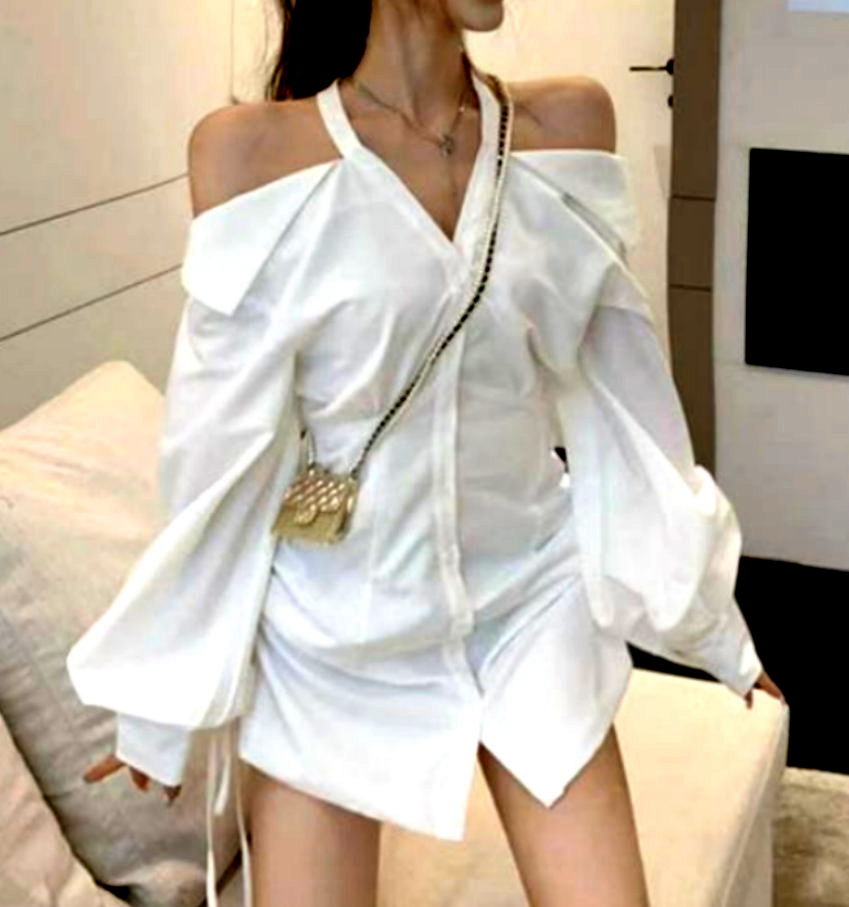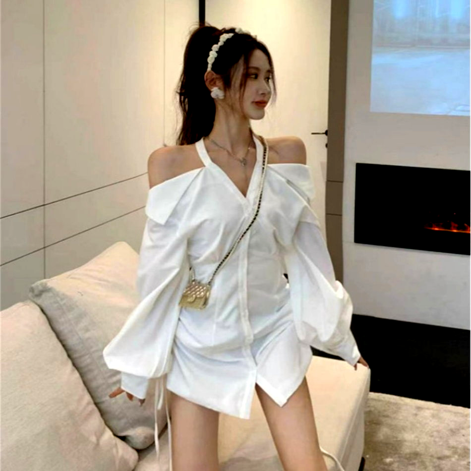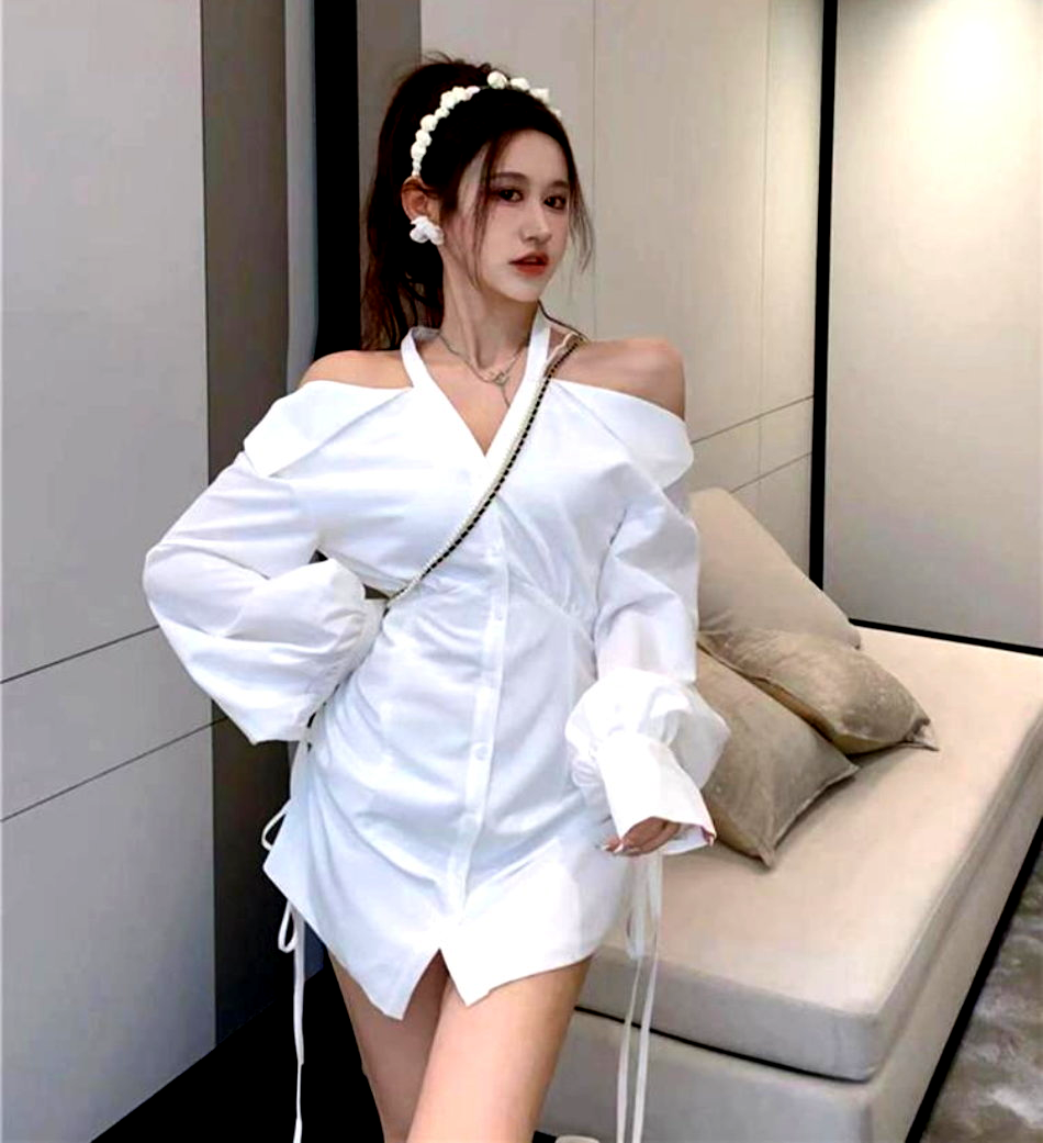 Sexy Off Shoulder Halter Full Buttons Front Drawstring Tie Long Sleeve Ruffle Tops Y2K Streetwear Party Dance Occasion Coolest Style Amazing