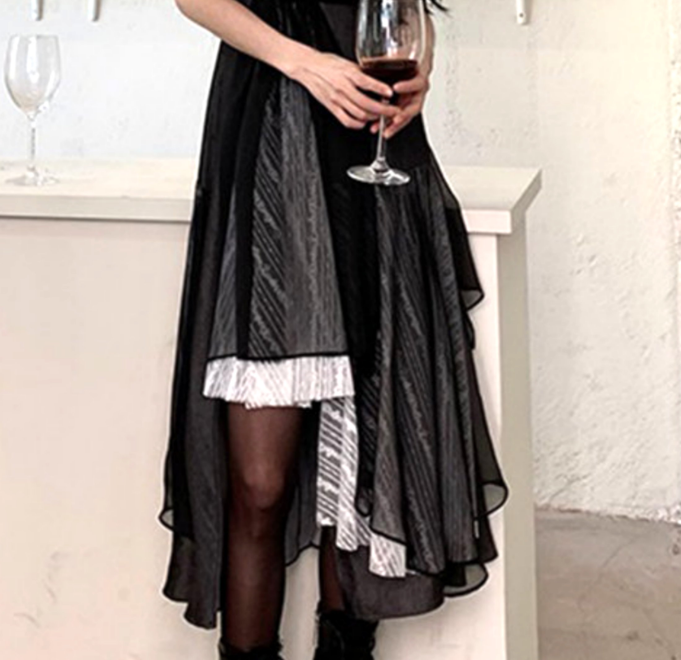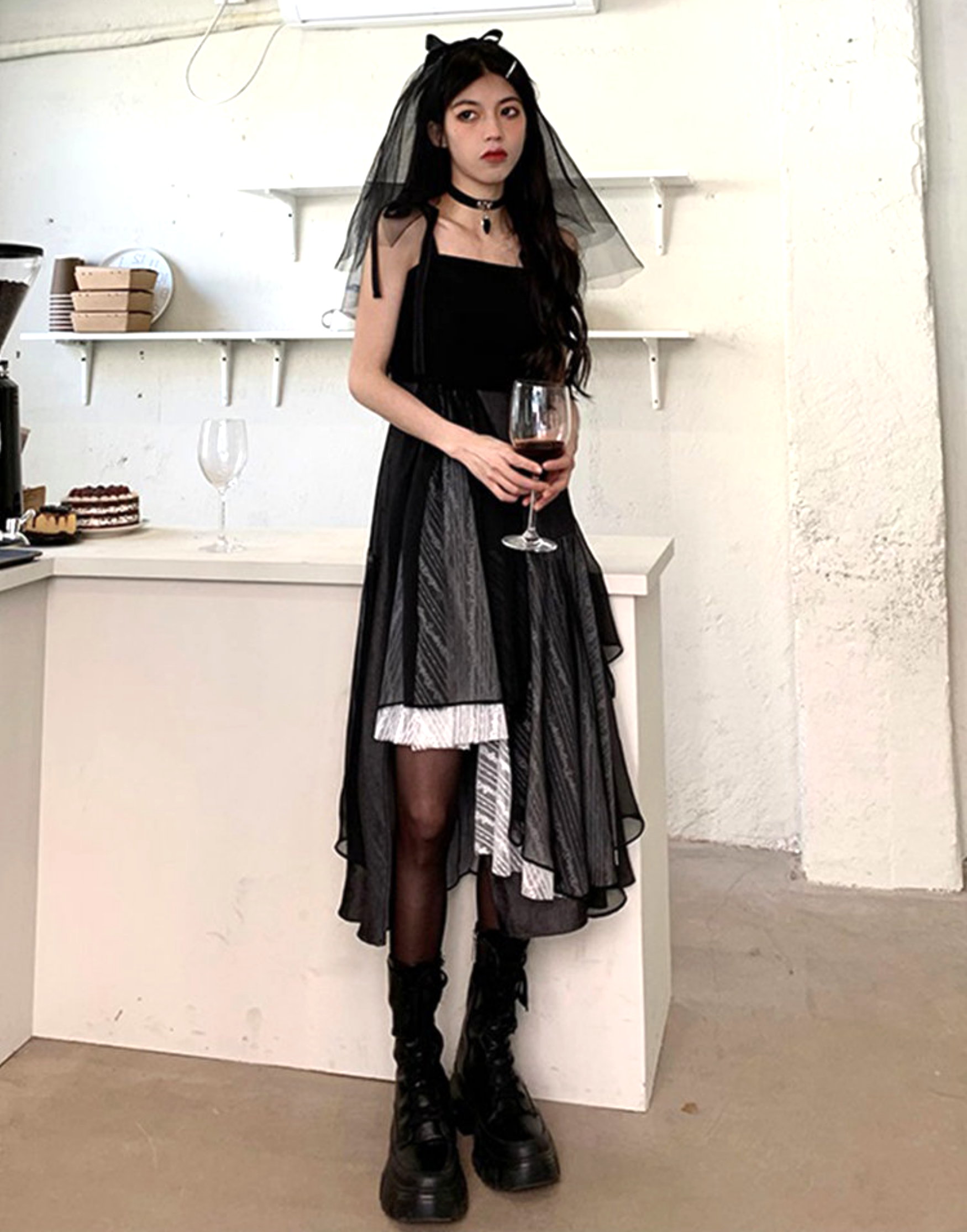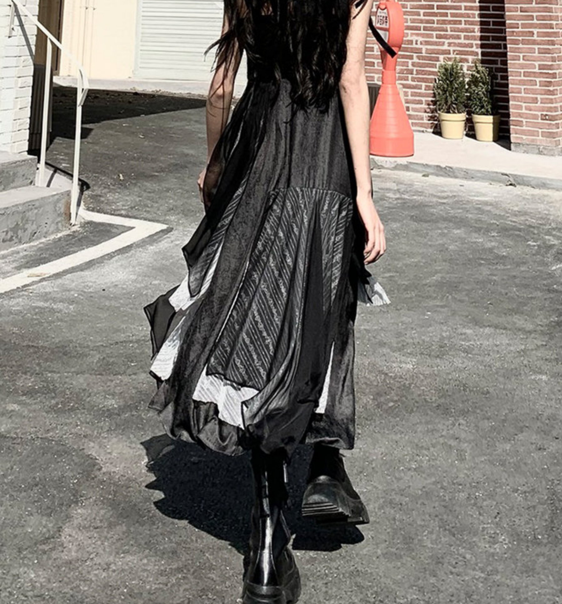 Black Gothic Aysmmetric Layers Lace Patchwork Punk Ruffle Dress Y2K 90s Streetwear Party Nightclub Dance Amazing