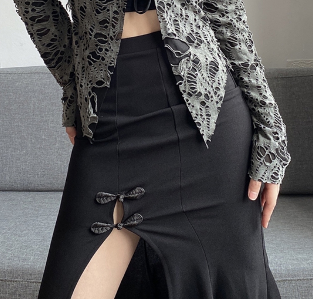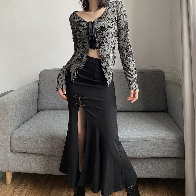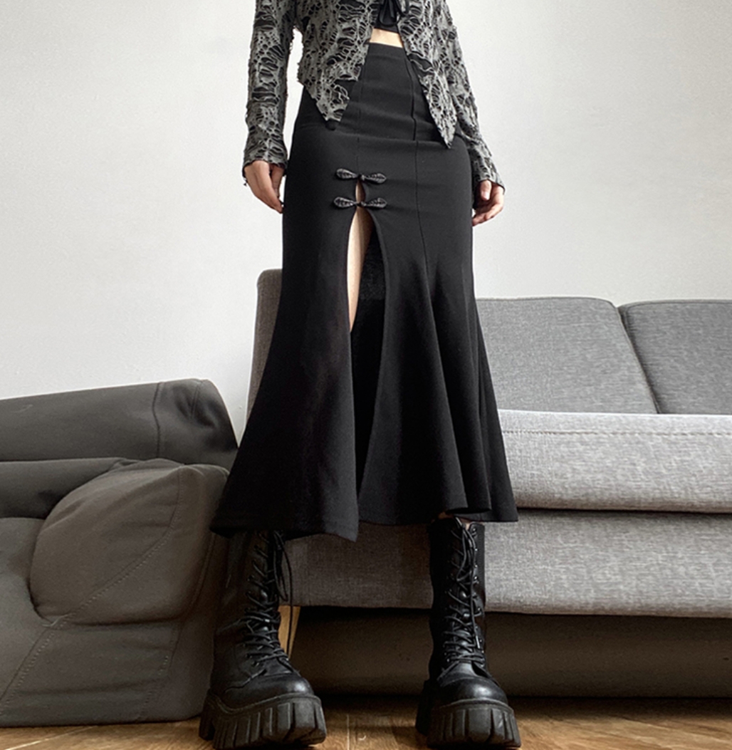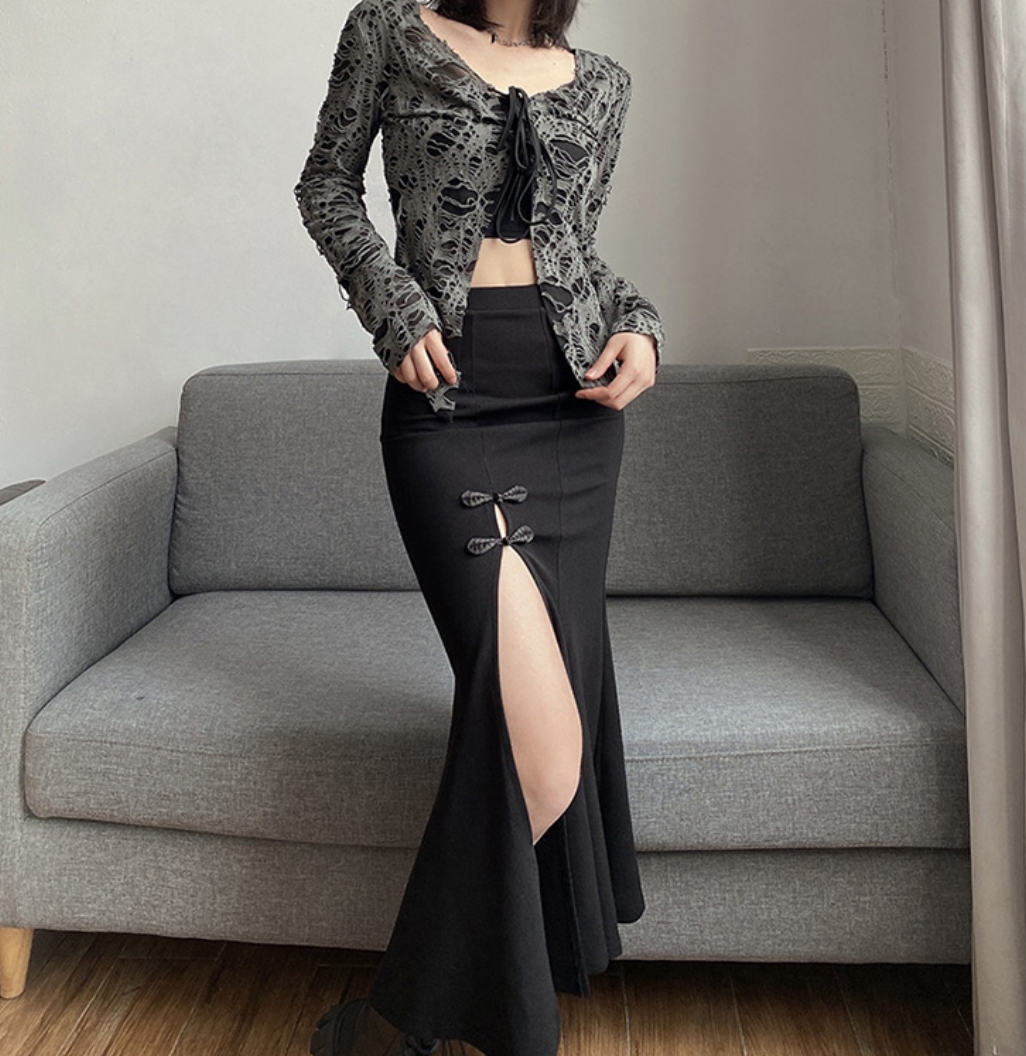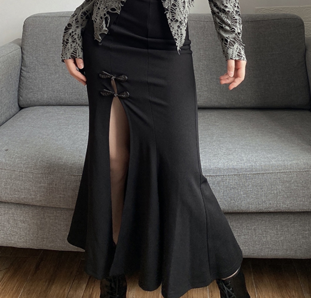 Stunning Punk Gothic Mermaid Fishtail Floral Knots High Slit Bodycon Dress Y2K 90s Party Dancing Occasion Streetwear Amazing