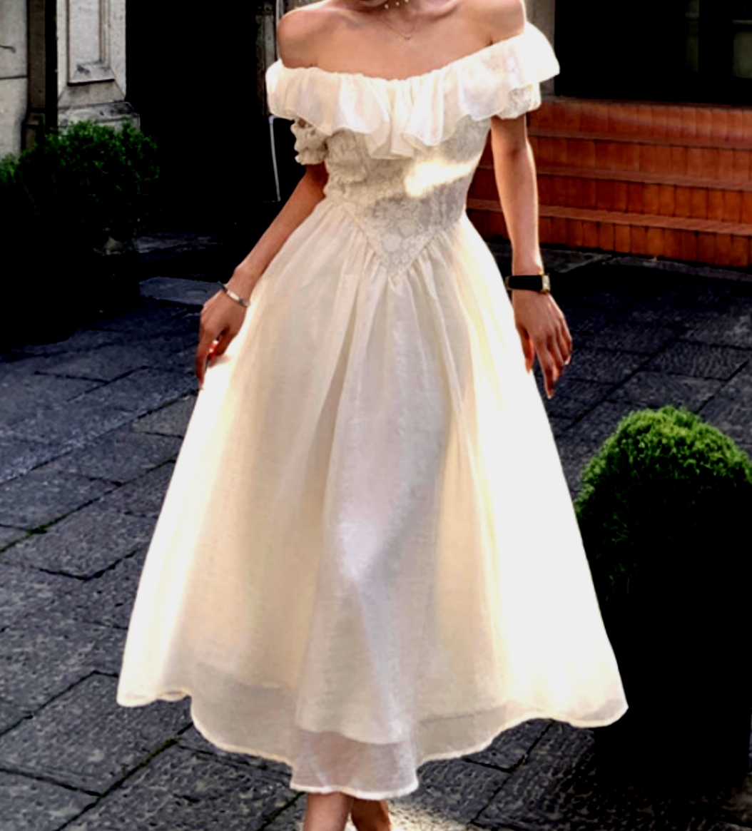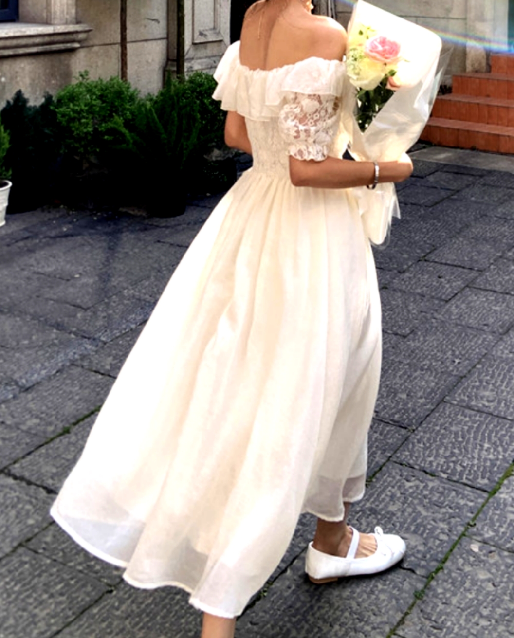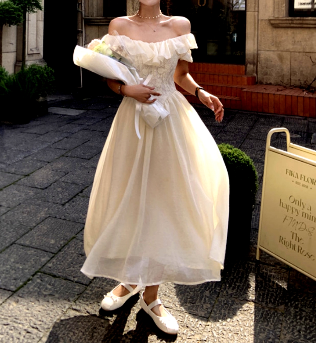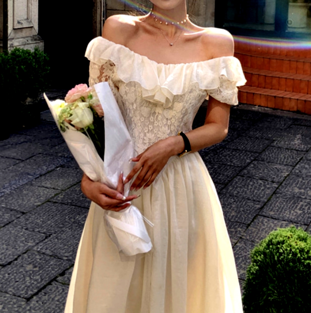 Gorgeous French Off Shoulder Bustier Crinkle Lace Prom Evening Ruffle Dress Party Event Special Occasion Ootdstyle Amazing