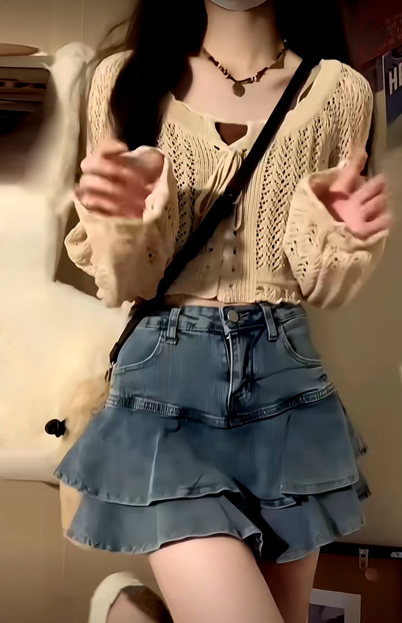 Stunning Drawstring Hollow Top With Ruffle Layered Mini Dress Shorts Set Streetwear Party Ootdstyle