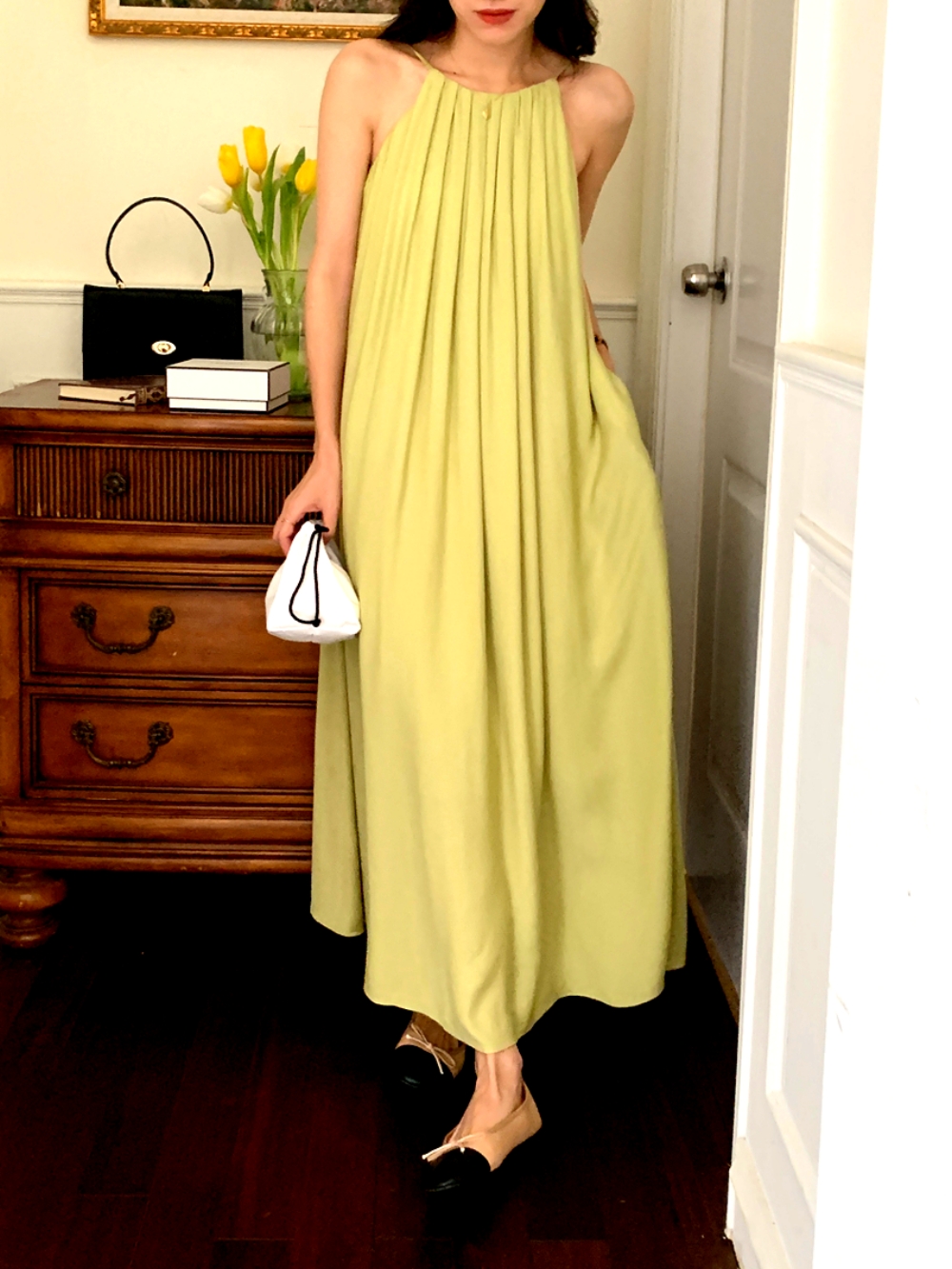 Stunning Backless Pleated Off-Shoulder Sleeveless Oversize Dress