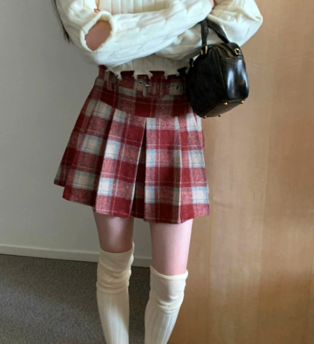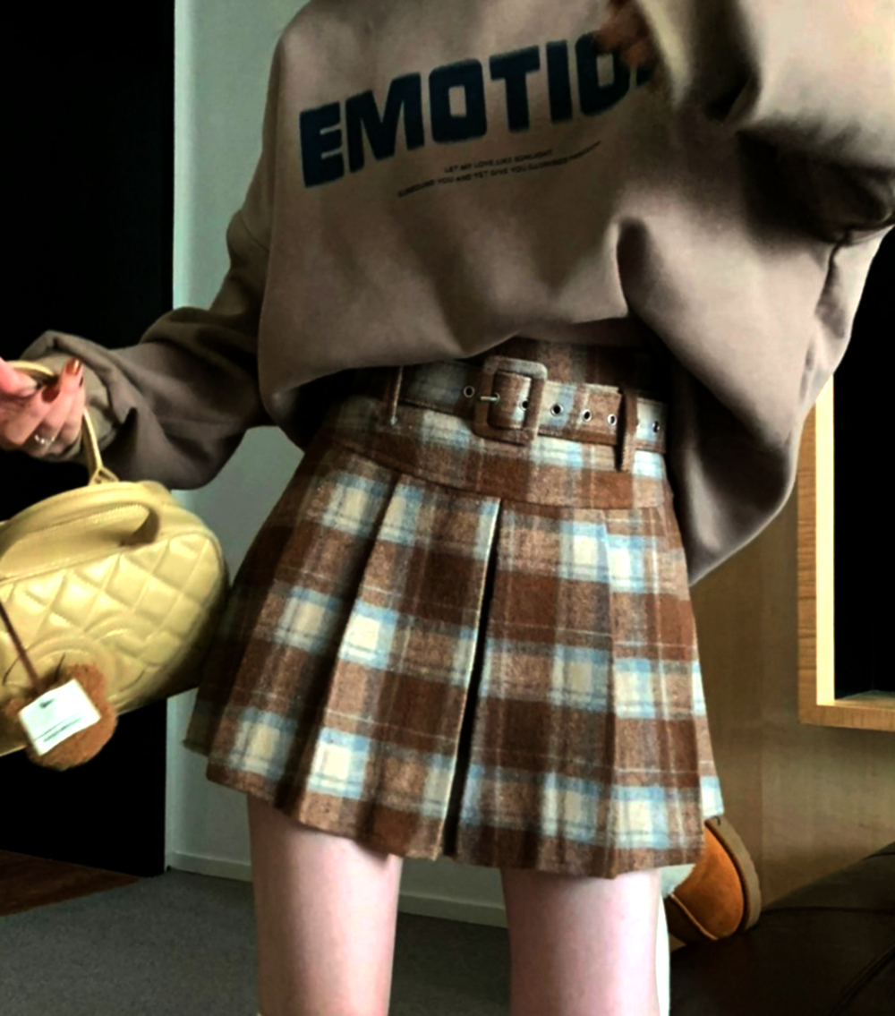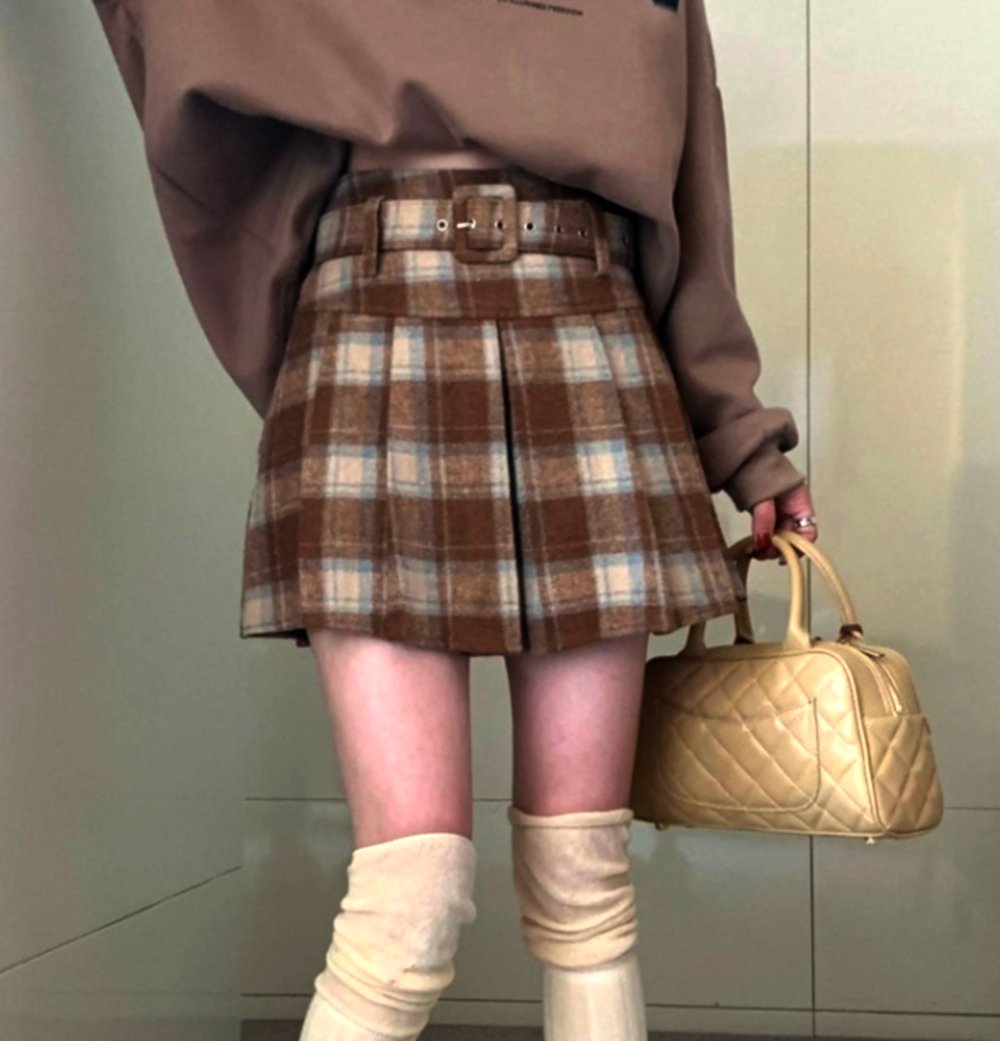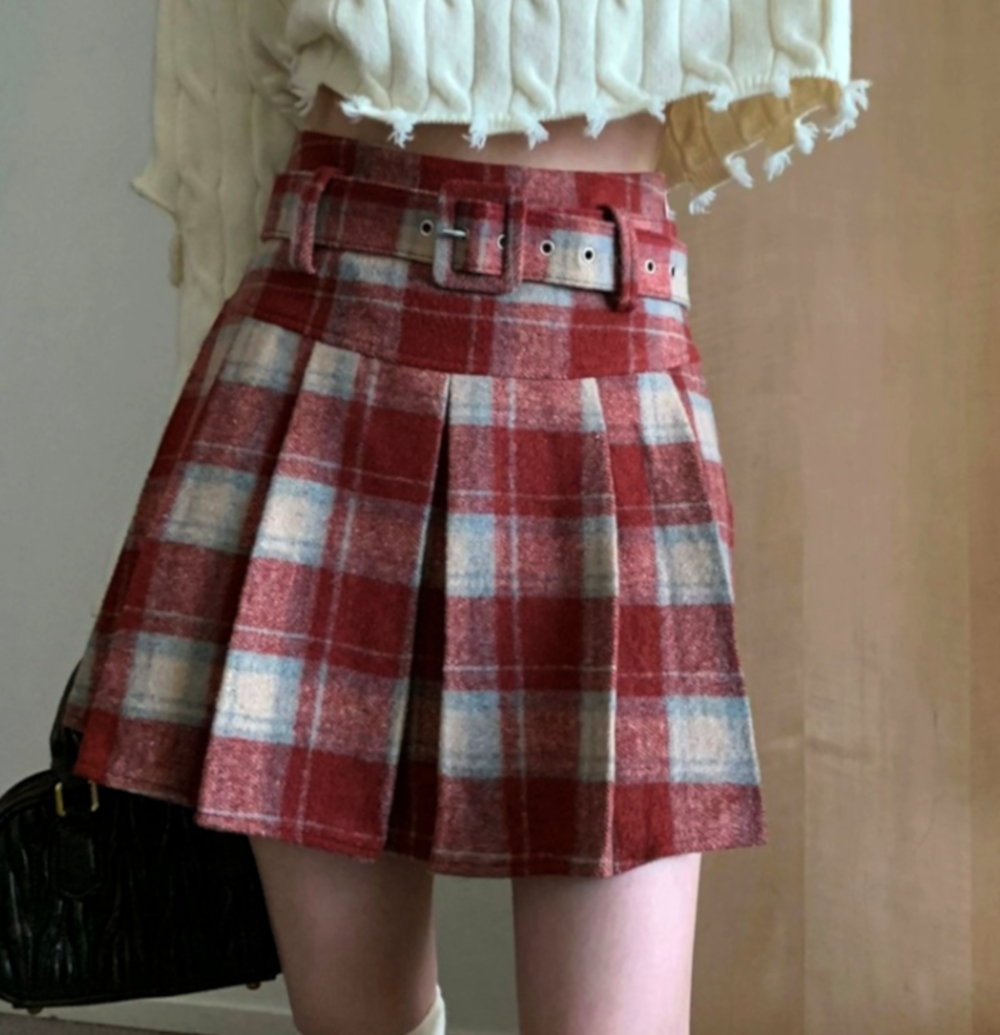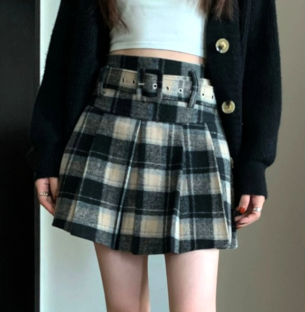 Stunning England Check Rave Sexy Low Waist Buckle Belt Pleated Mini Wool Skirt Dress Ootdstyle Amazing