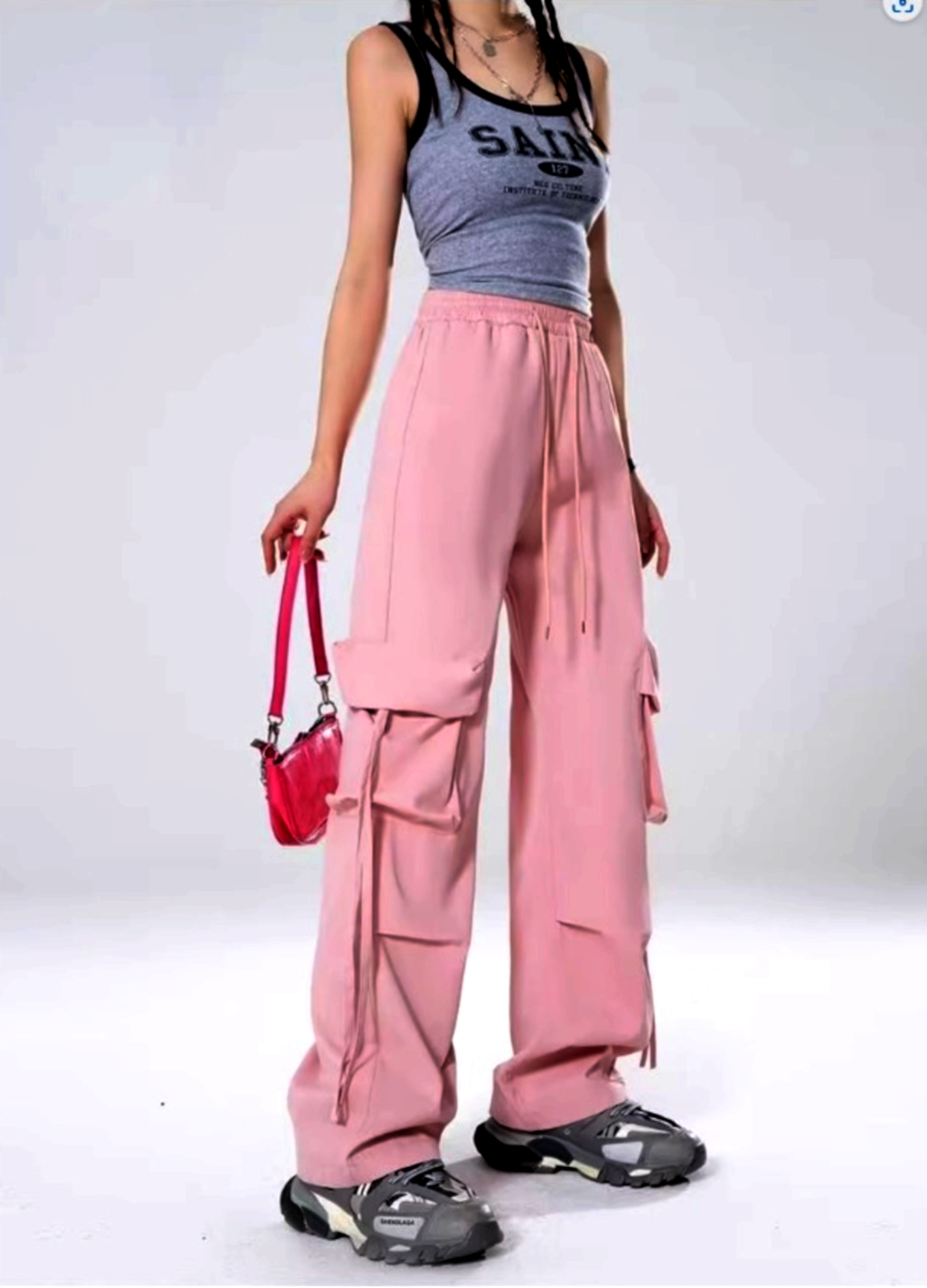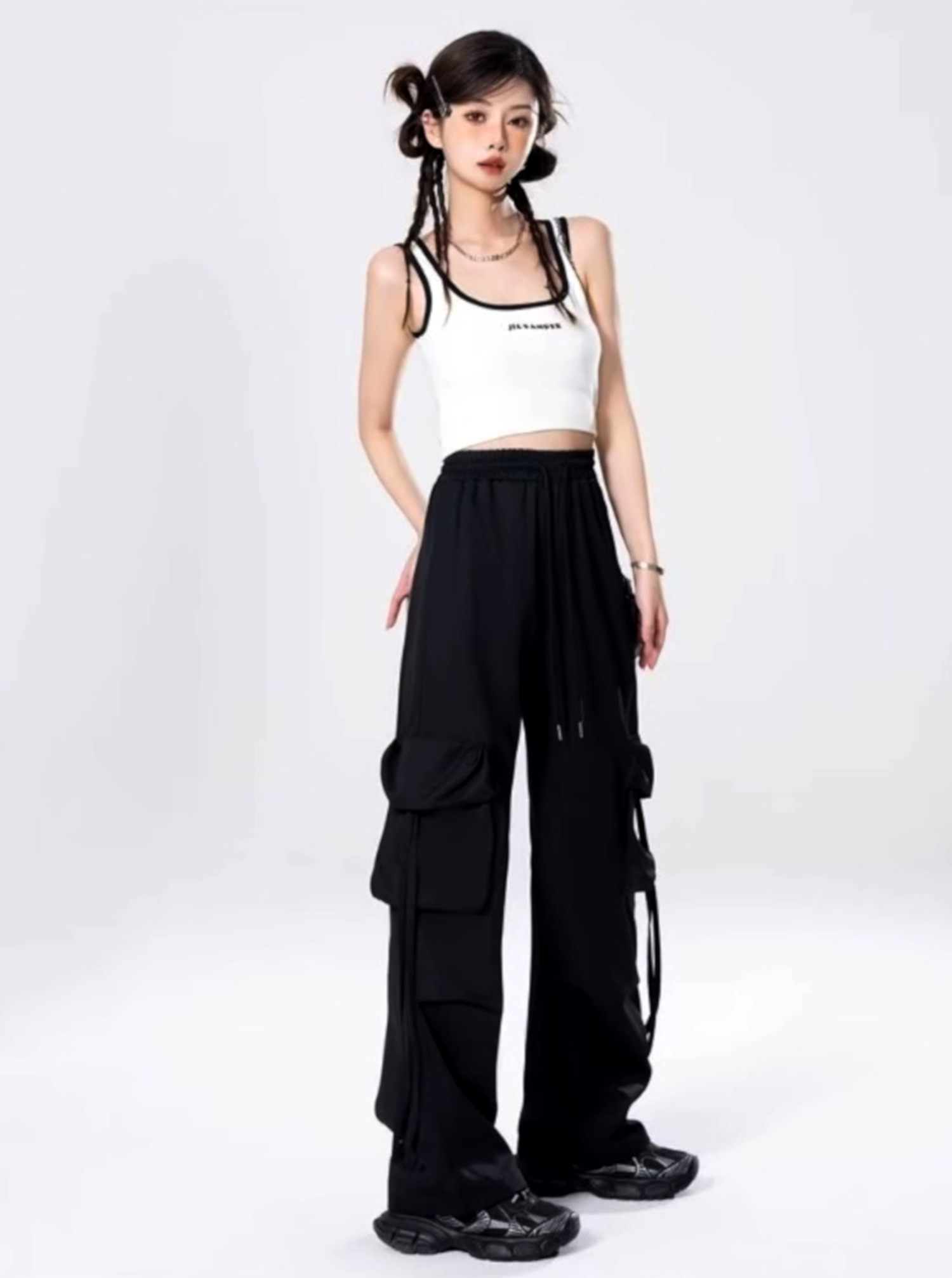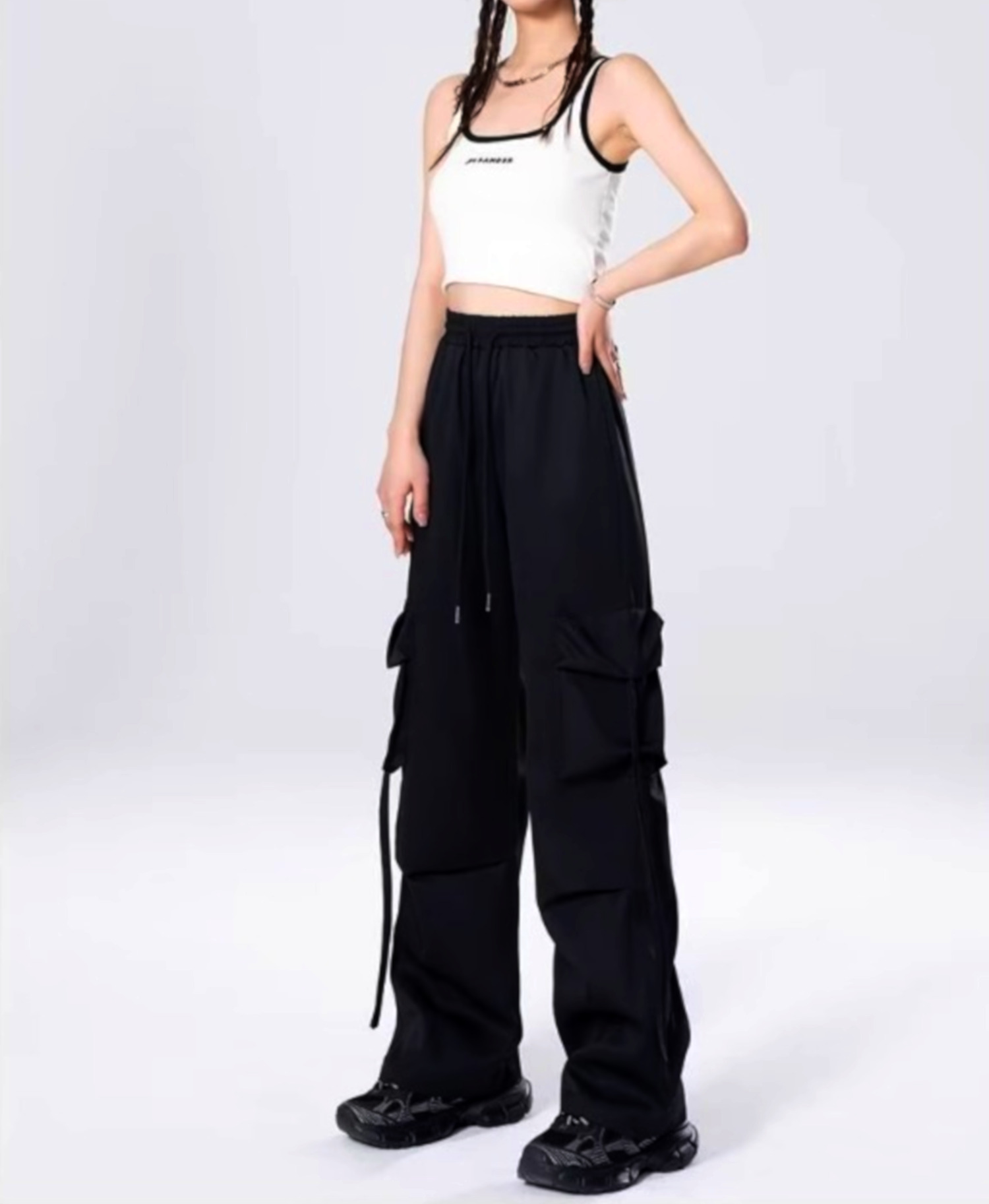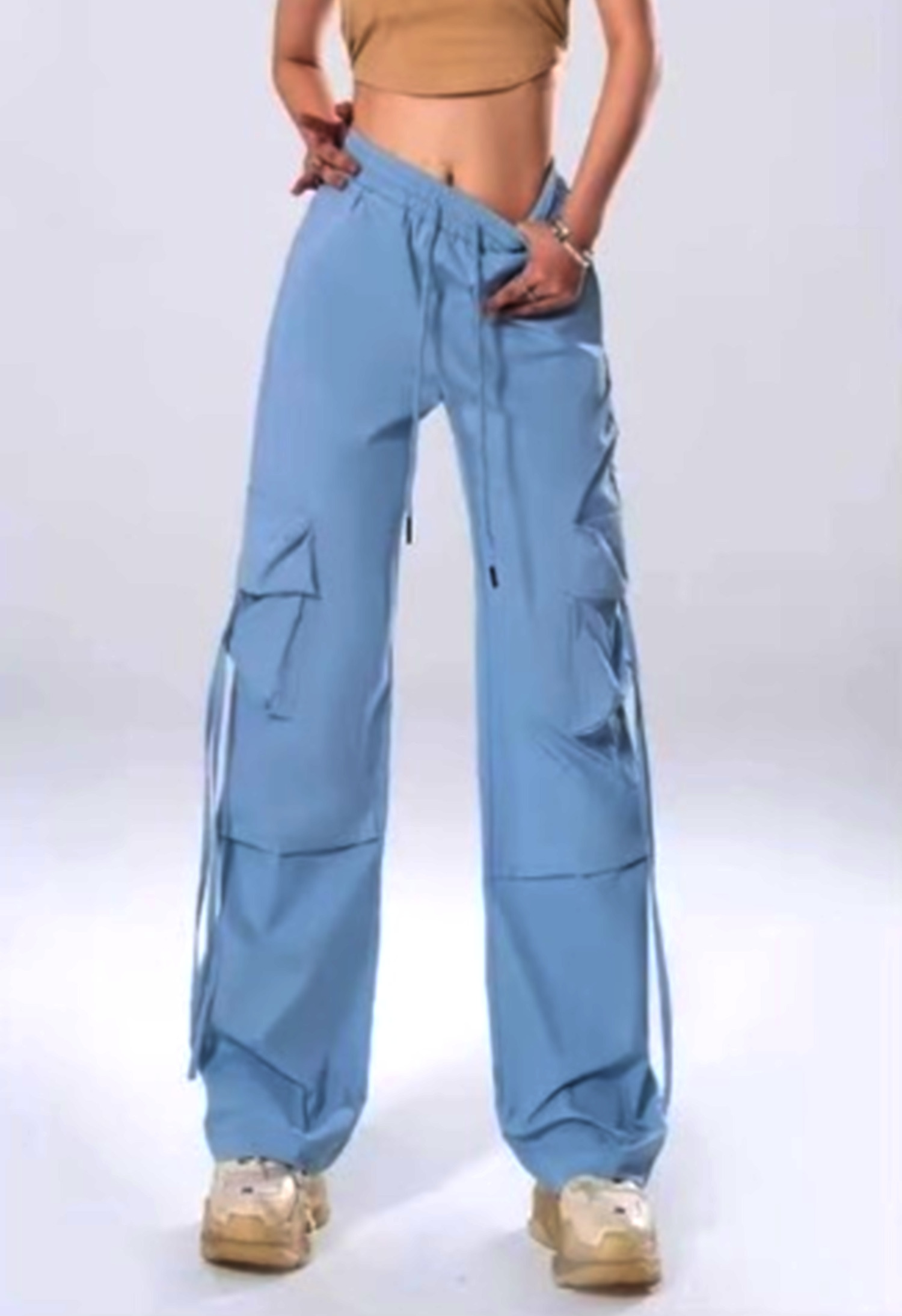 FREE SHIP! Stunning Happie Wide-Leg Pockets Cargo Oversize Trousers Y2K Unique Rave.