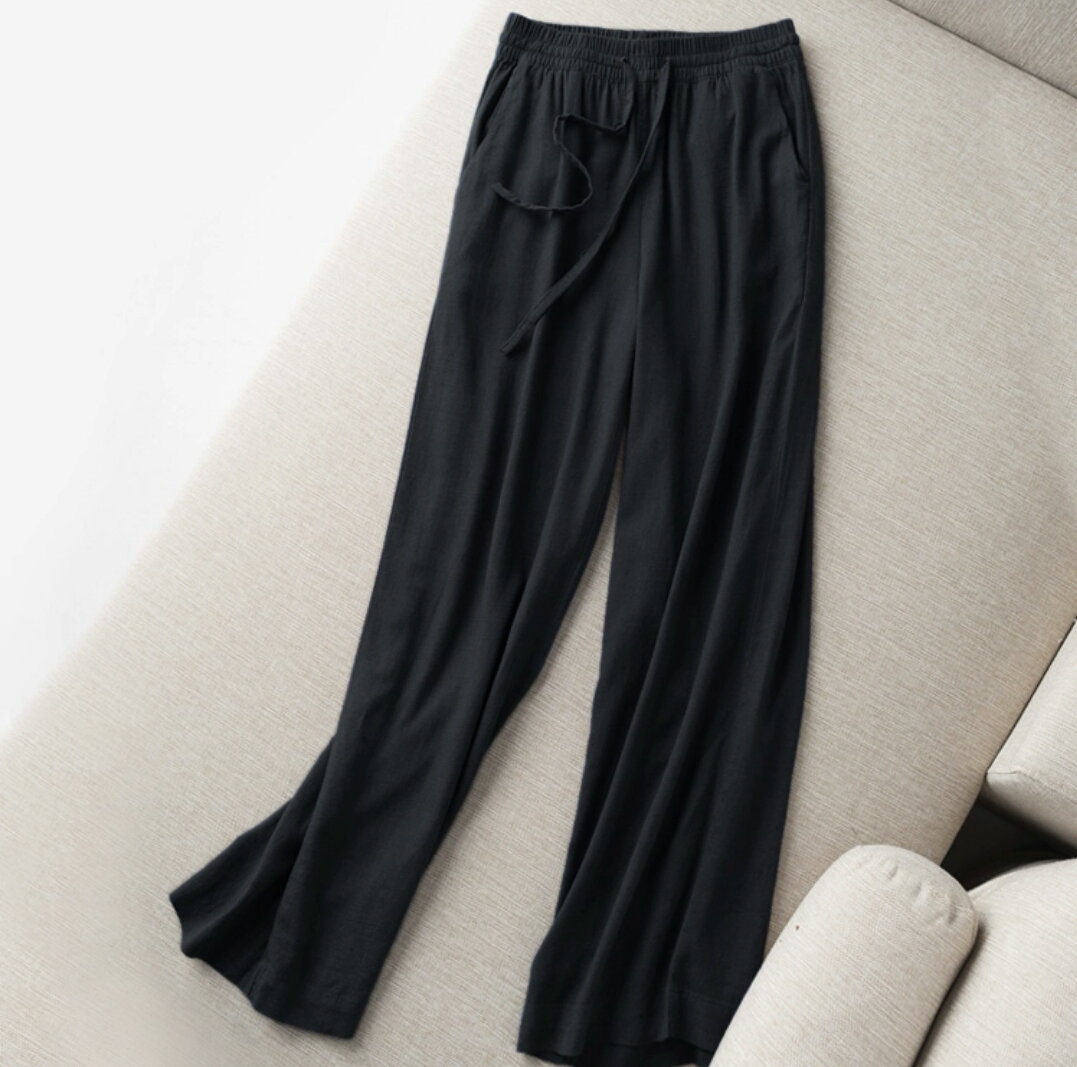 Women Wide Leg Trousers High Waist Chic Streetwear Sash Casual Pants