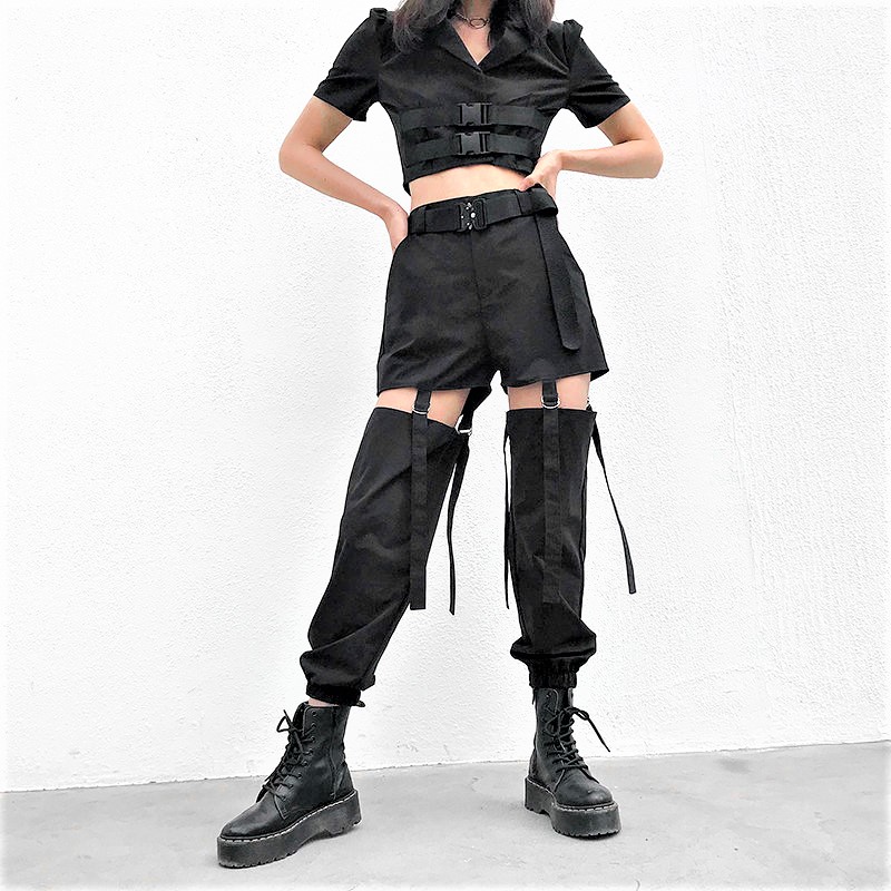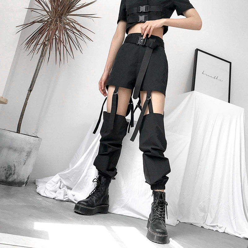 Streetwear Harajuku Buckle Hollowed-out Casual Overalls Women's Pants