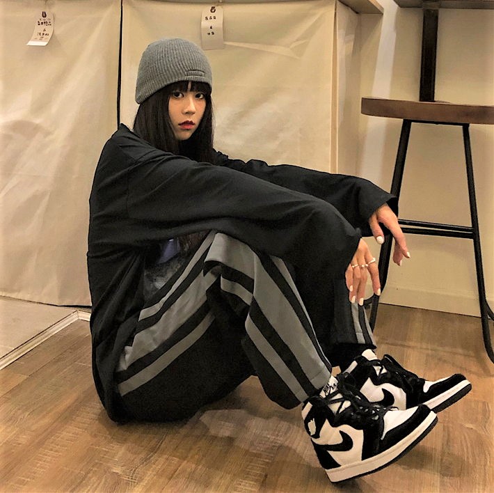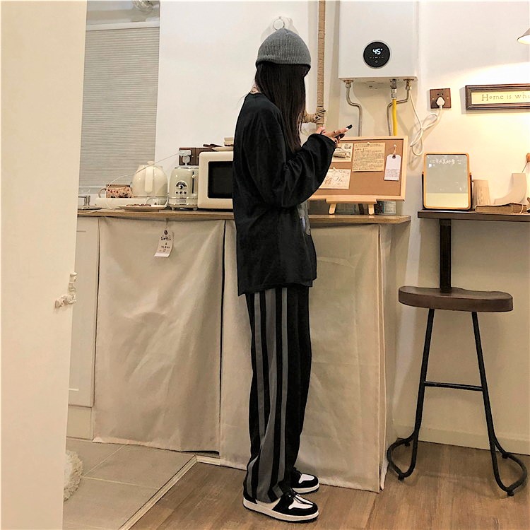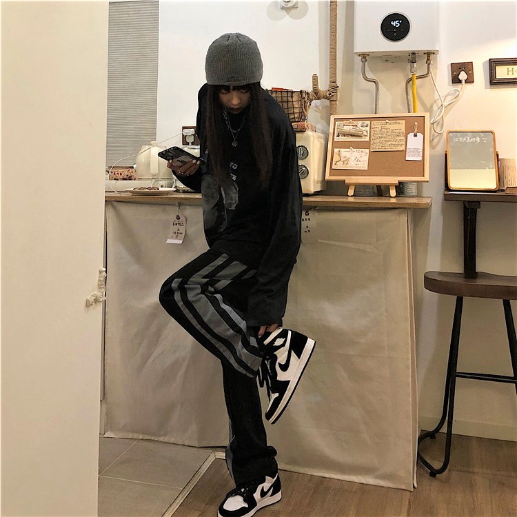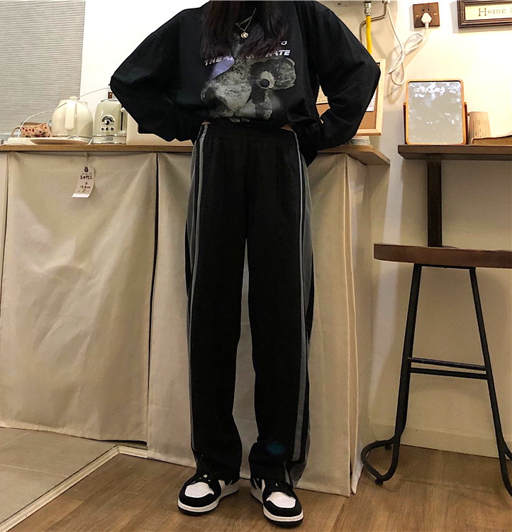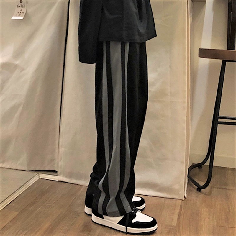 Retro Hip Hop Punk Thick Stripe Prints Loose Pants Straight Wide Leg Trousers