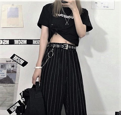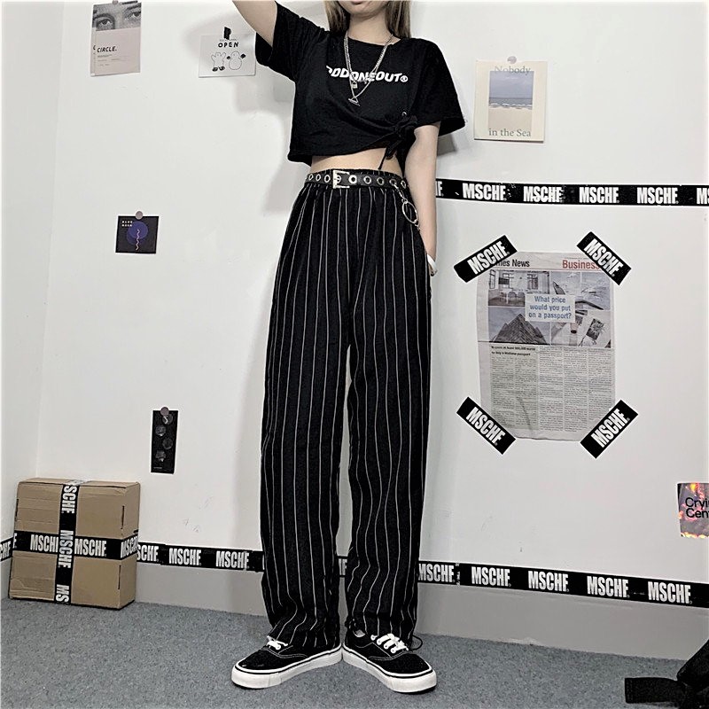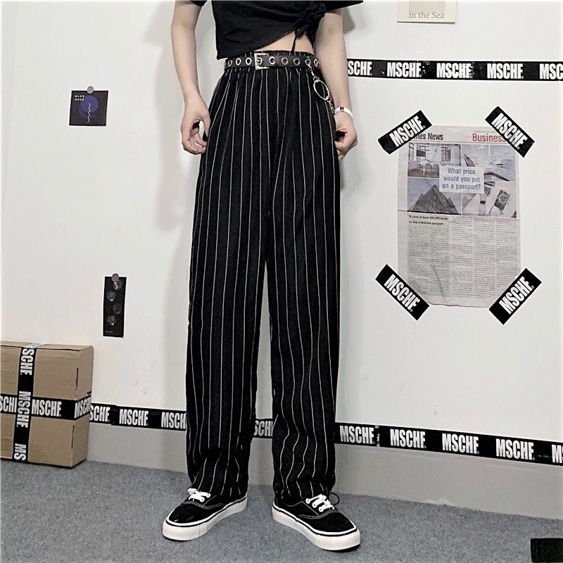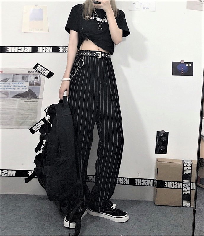 Gothic Black Punk Stripe Print Hip Wide Leg Loose Pants