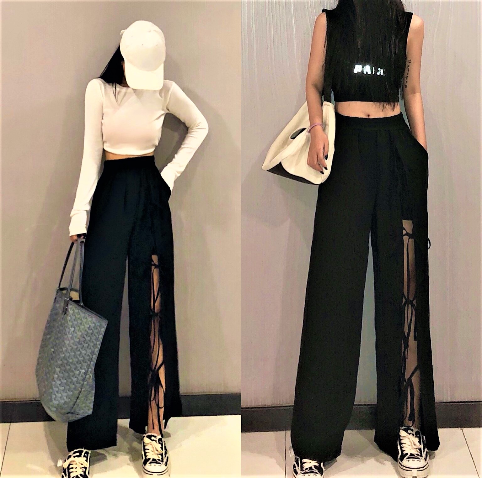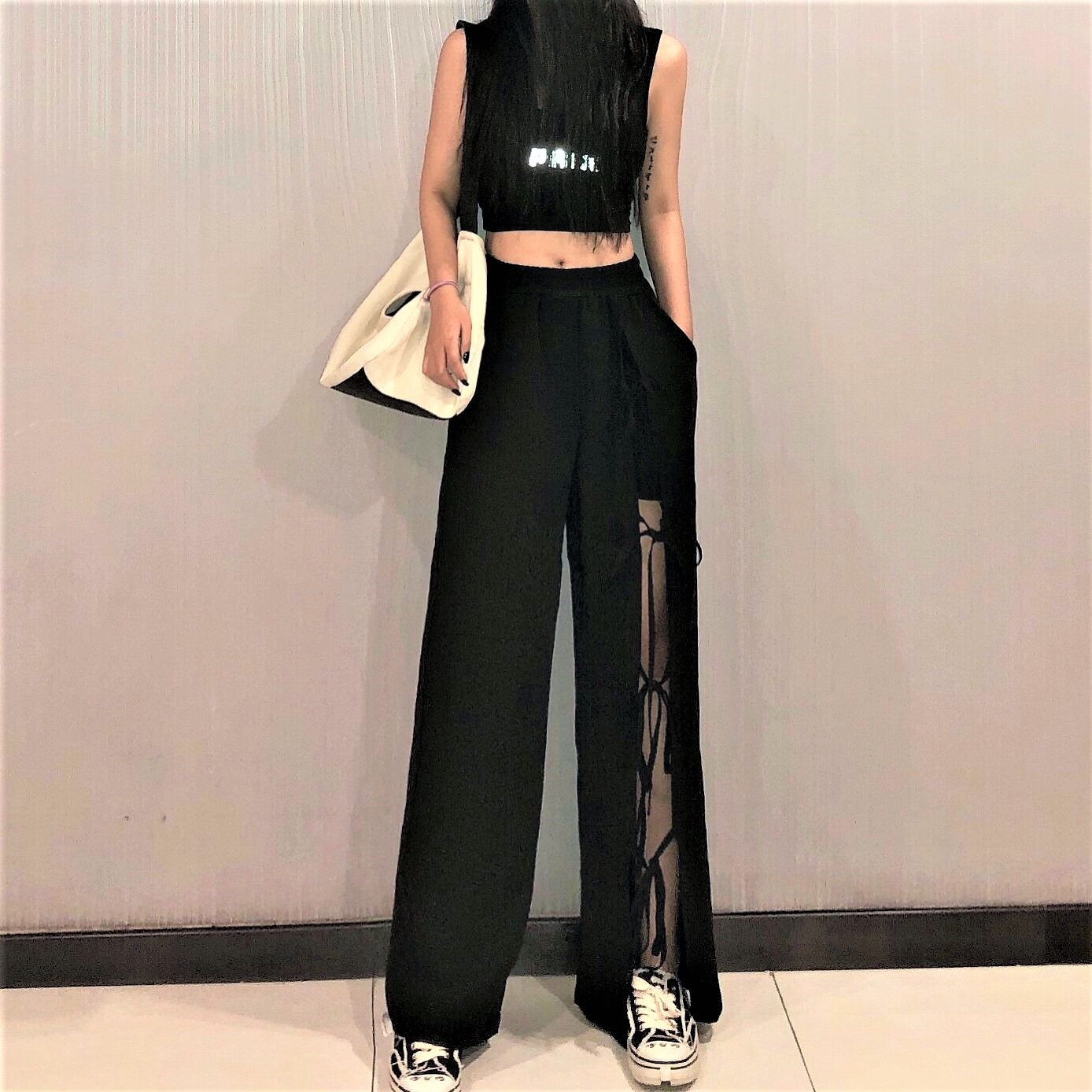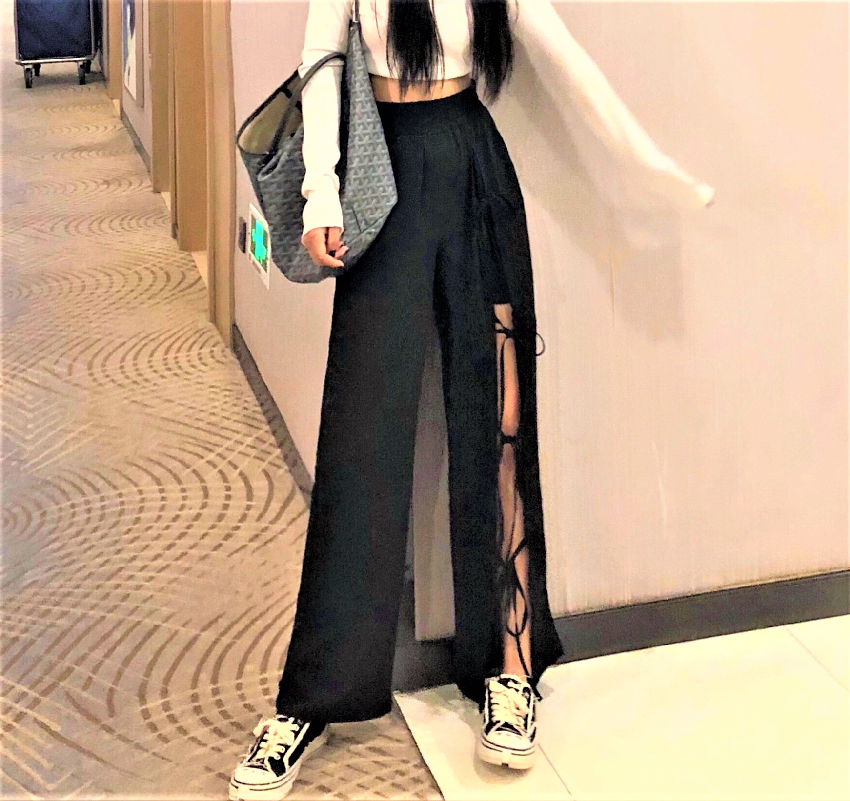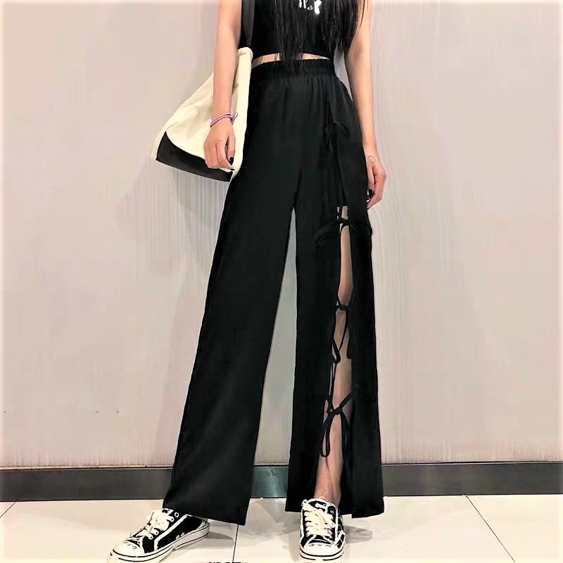 Stunning Sexy Streetwear Irregular Hollow Strap Lace-up Leg Details Soft Loose Trousers