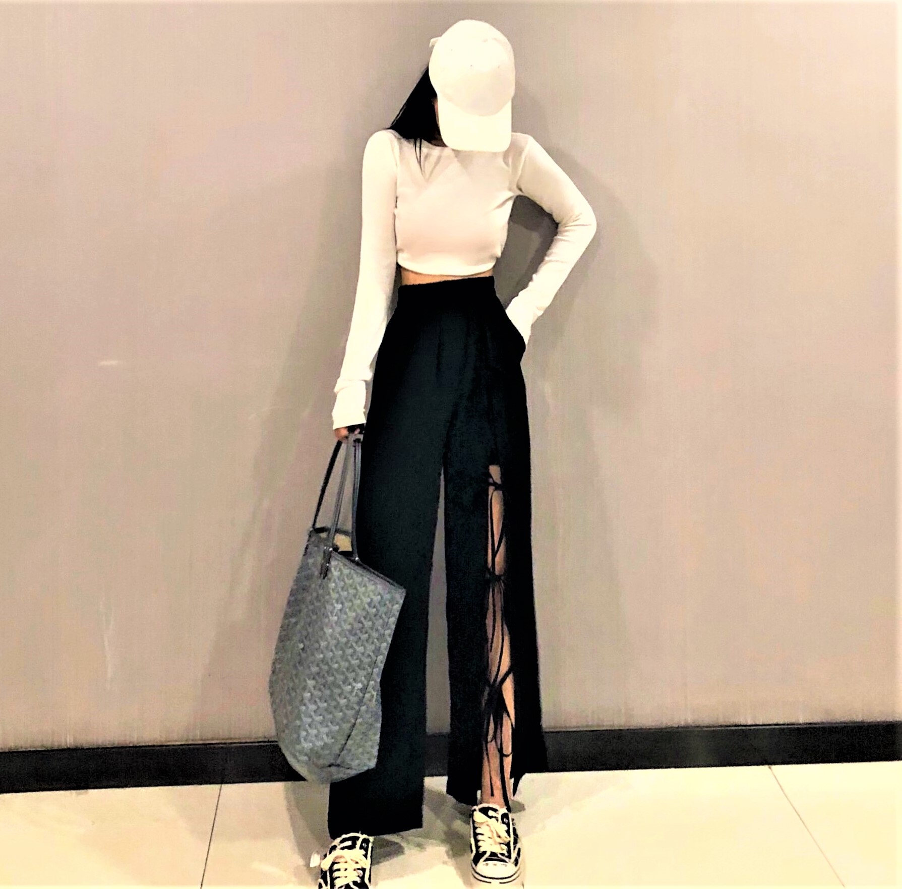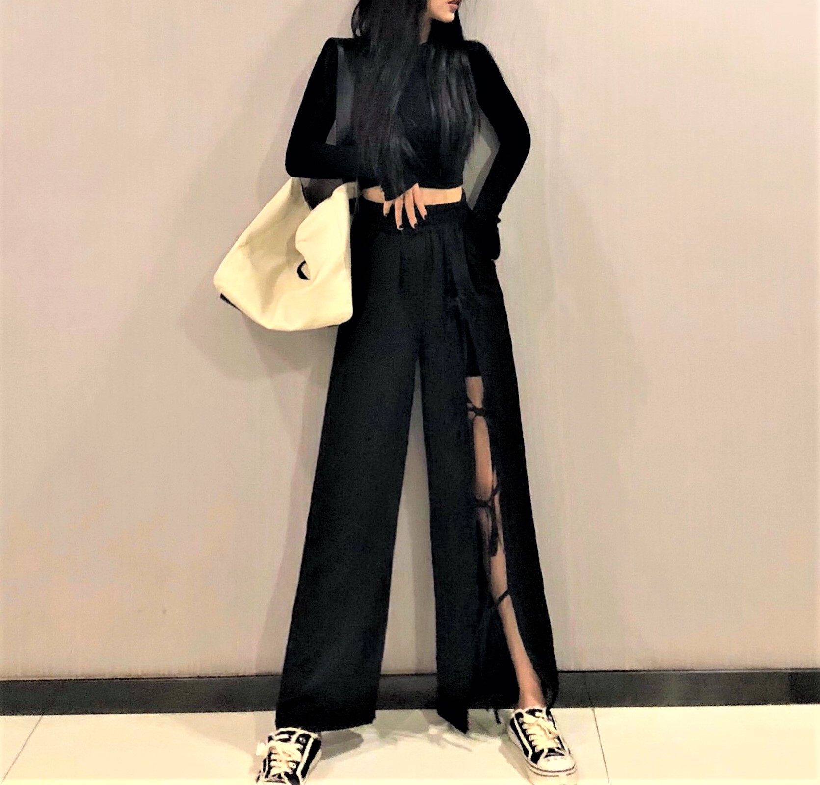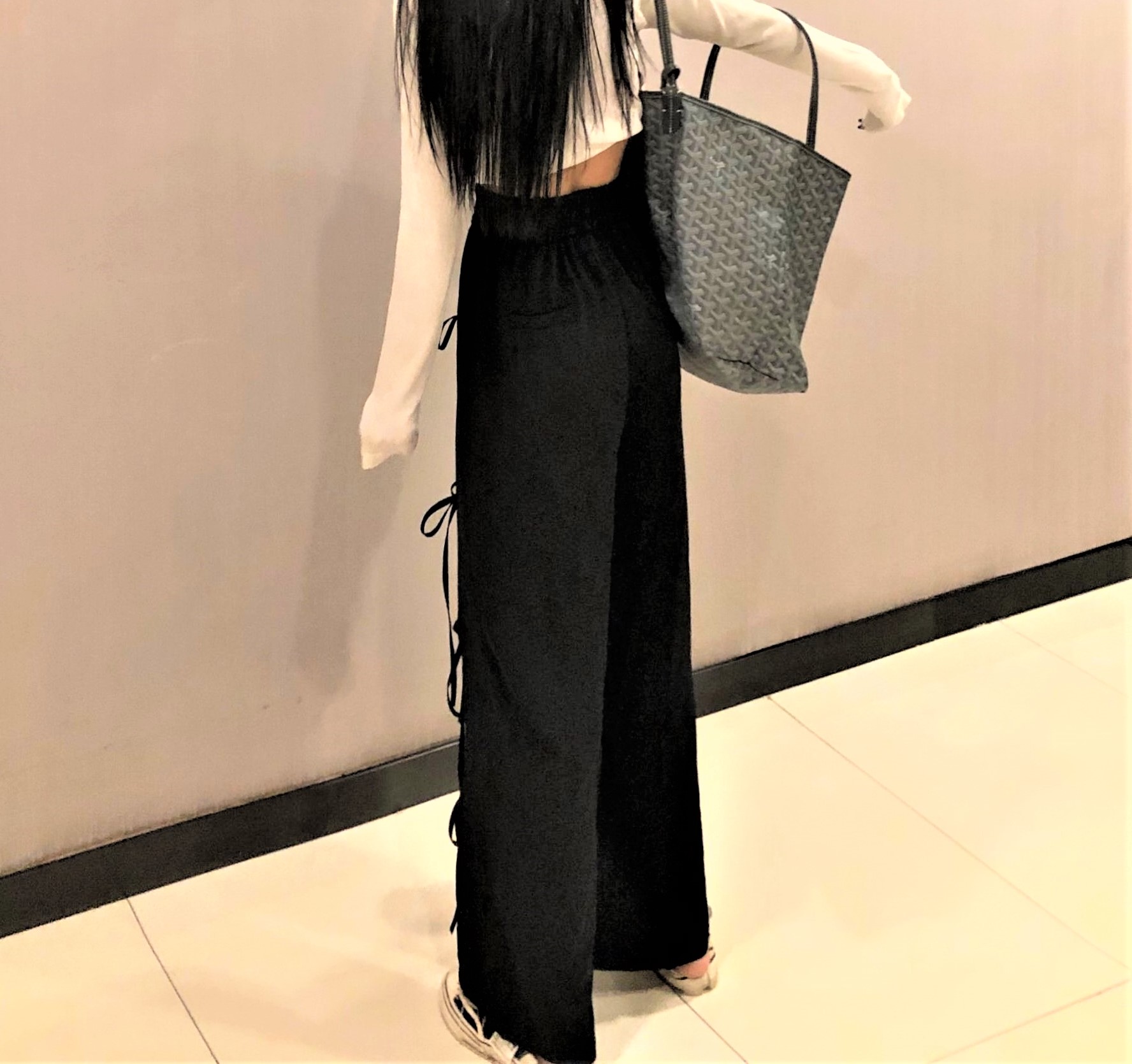 Stunning Sexy Streetwear Irregular Hollow Strap Lace-up Leg Details Soft Loose Trousers