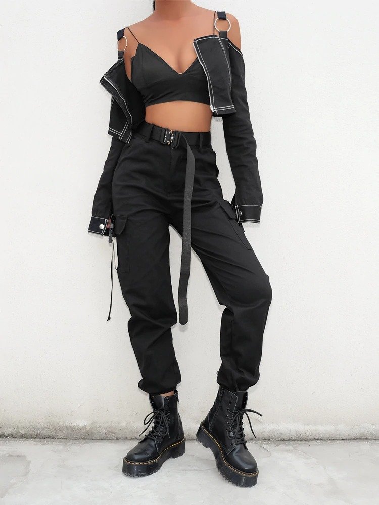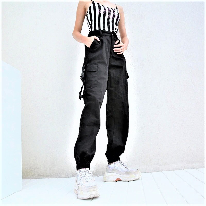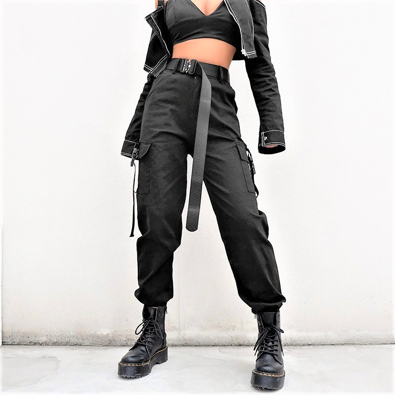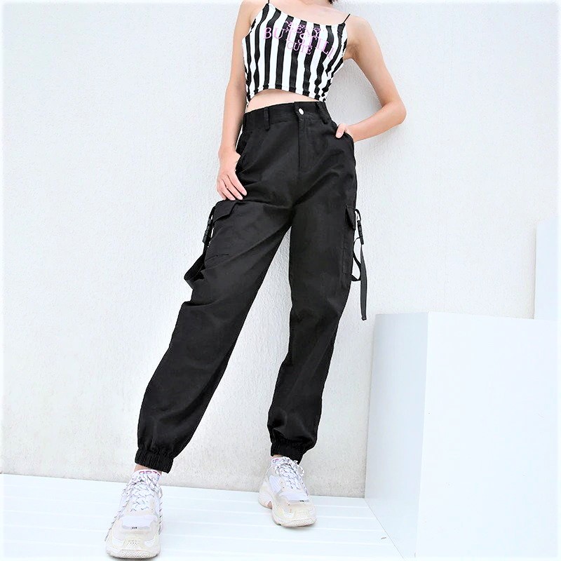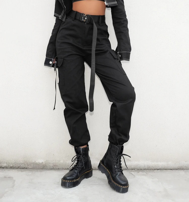 Streetwear Cargo Pants Running High Waist Punk Ladies Black Trousers 90s Y2K Party Amazing