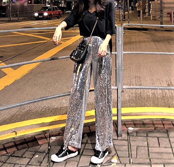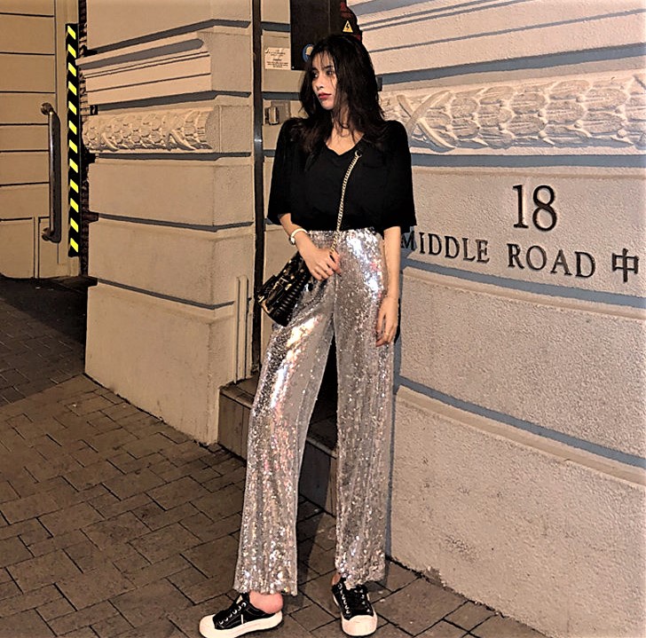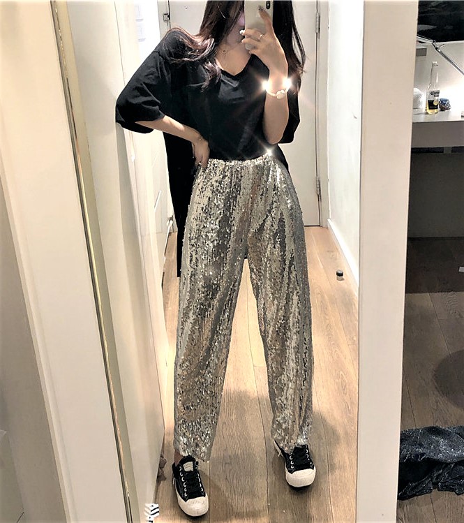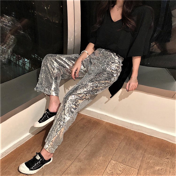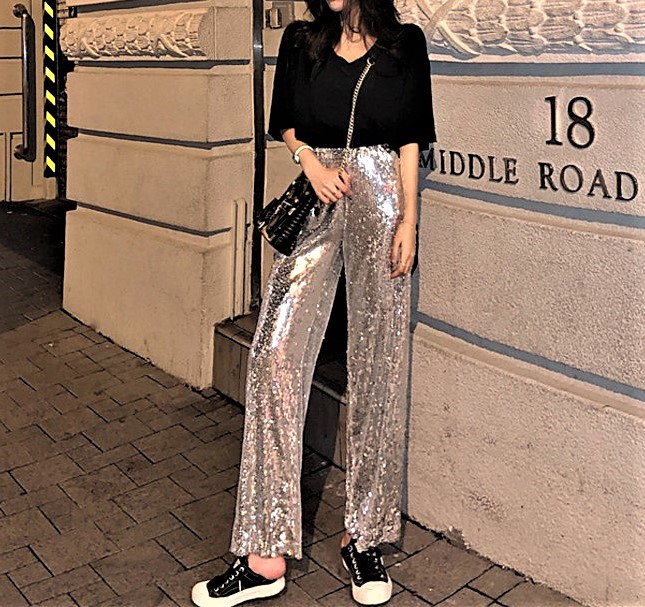 Gorgeous Punk Shimmer Sequins Paints Wide Leg Straight Trousers