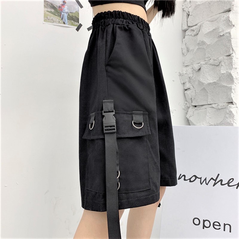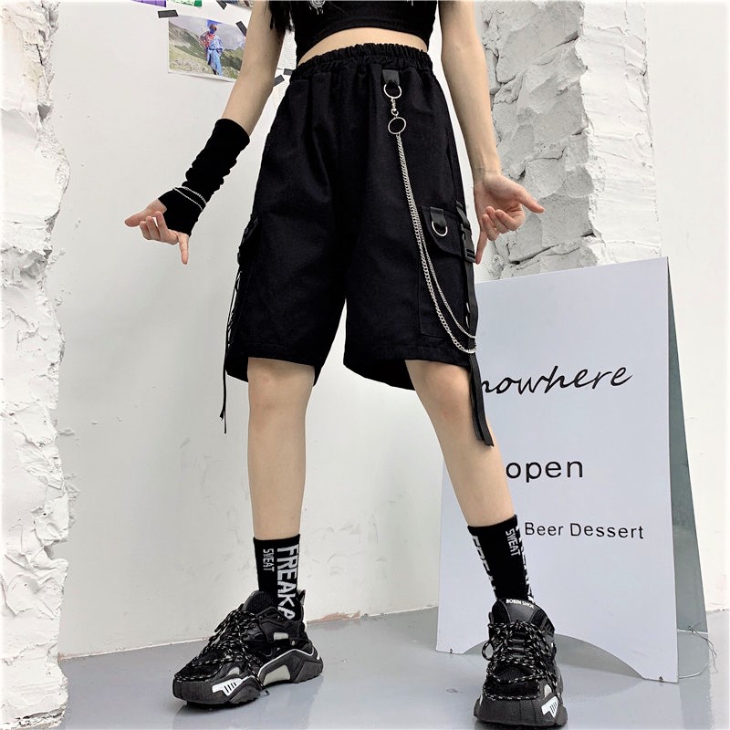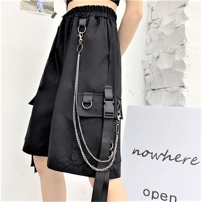 Punk England Cargo Pockets Harajuku Metal Chain Hippie Wide Leg Shorts Pants Unique Rave