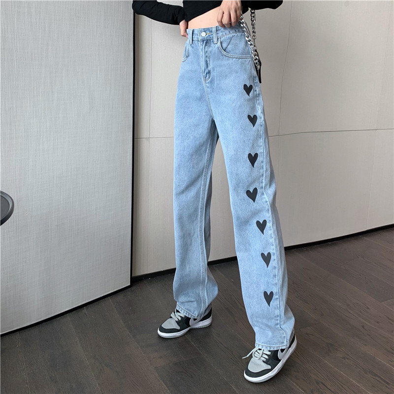 Unique Minimalist Streetwear Heart Graphic Pattern Straight Leg Loose Jean Punk Trousers 90s Y2K Party Occasion Birthday Dating Anniversary Amazing