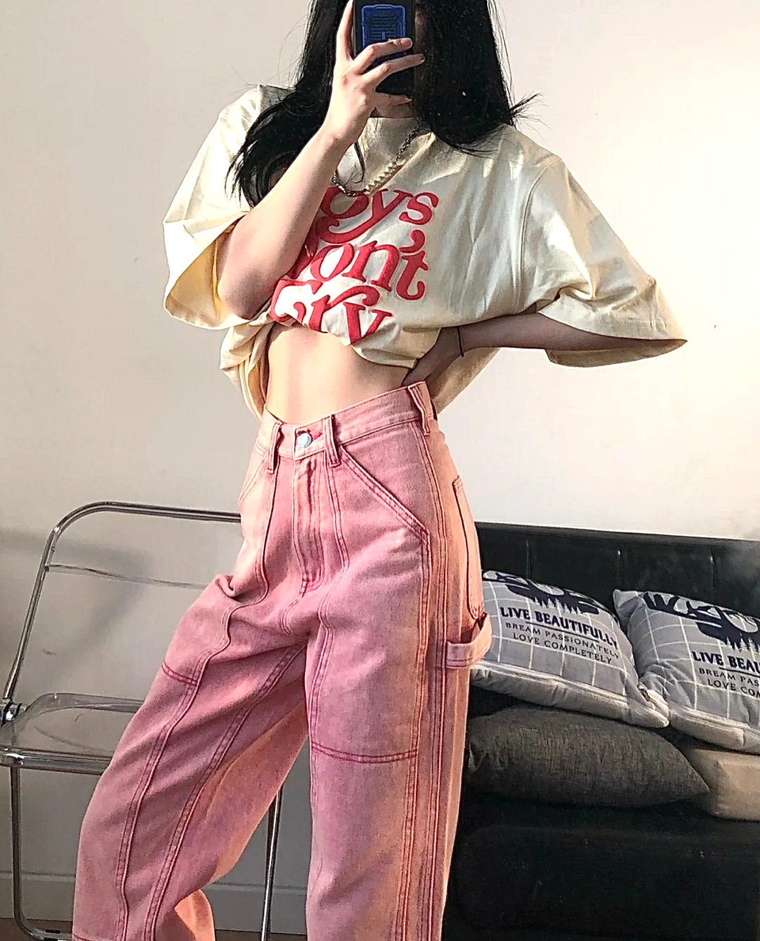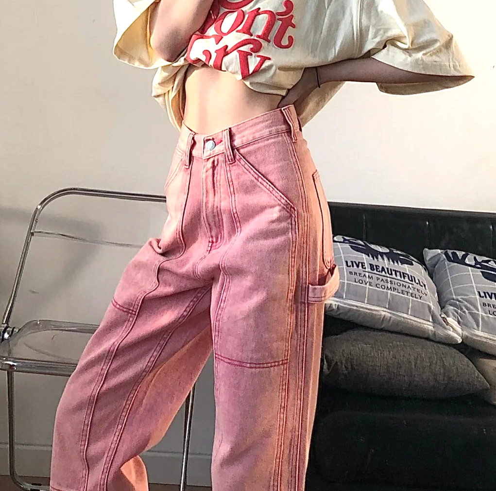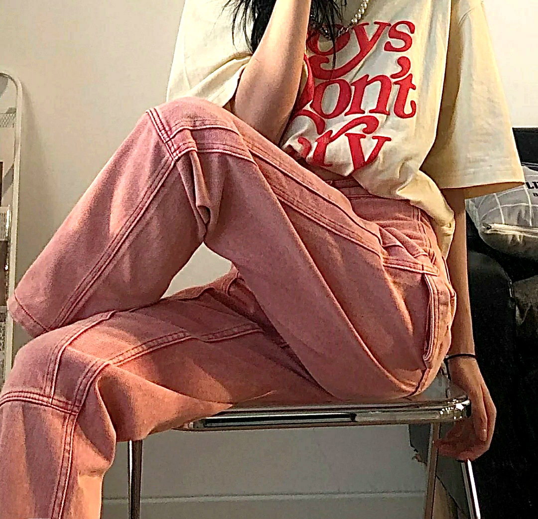 Unique Punk Baggy Hippie Contrast Stitching Pinstripe Wide Leg Adorable Loose Trousers Y2K