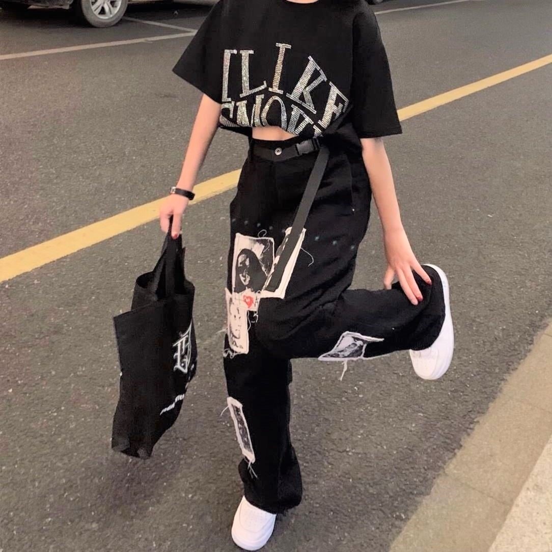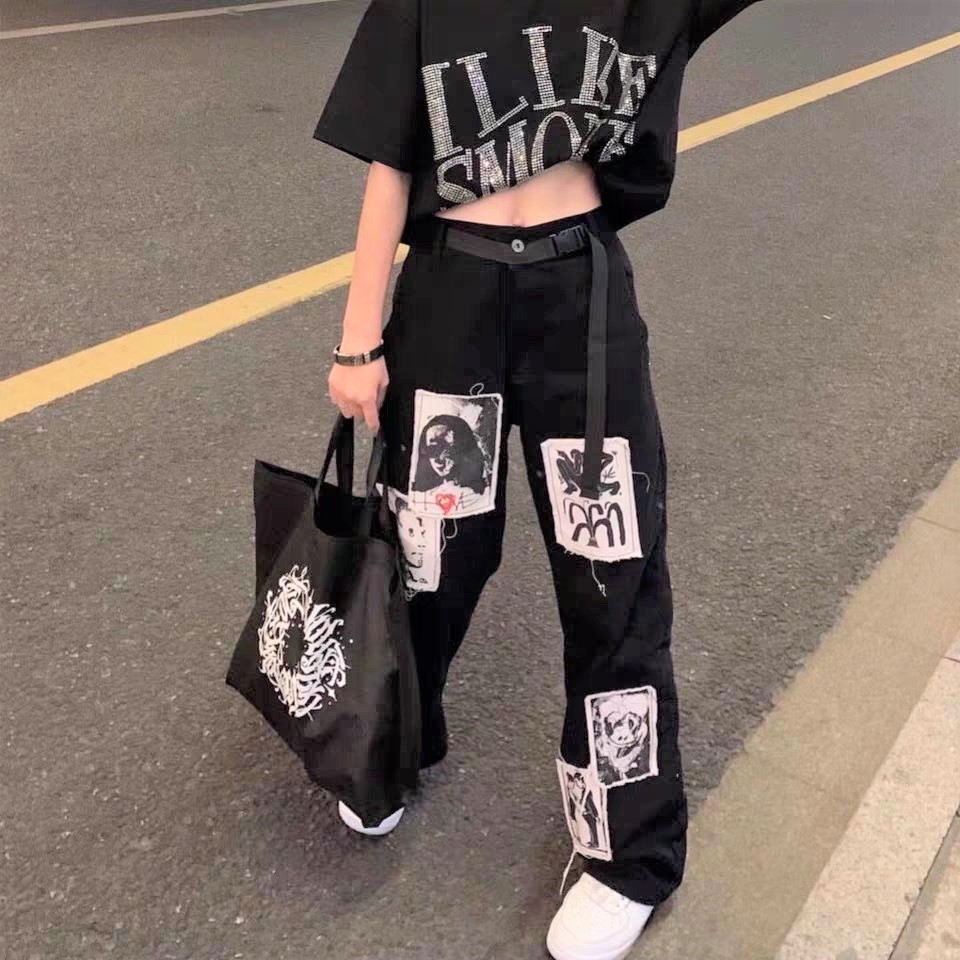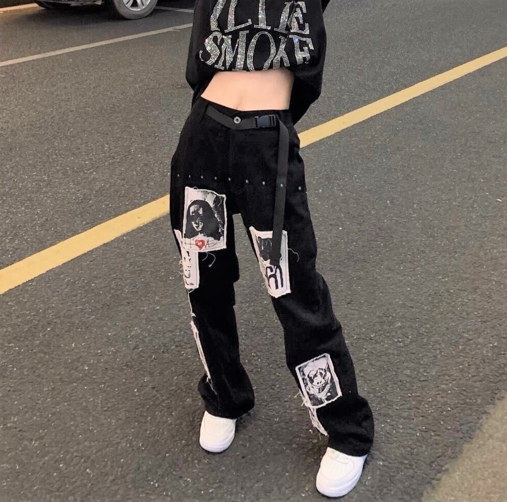 Stunning Punk Baggy Hippie Abstract Patchwork Wide Leg Loose Fits Straight Trousers Streetwear Unique Rave Amazing