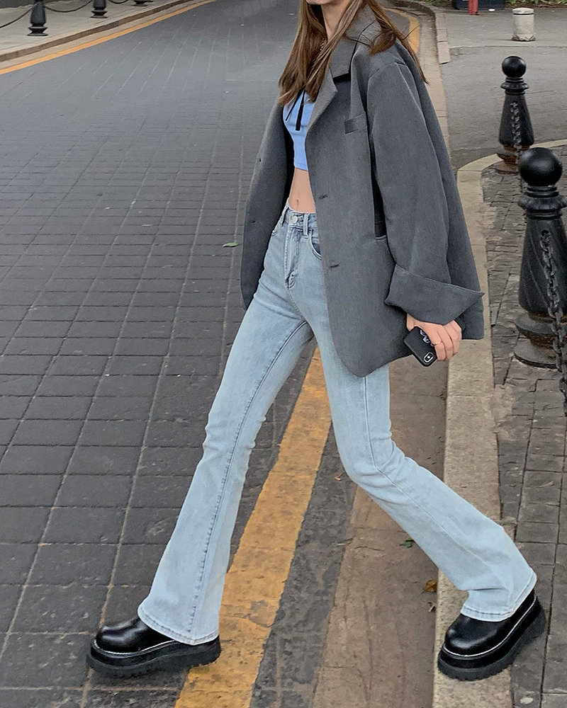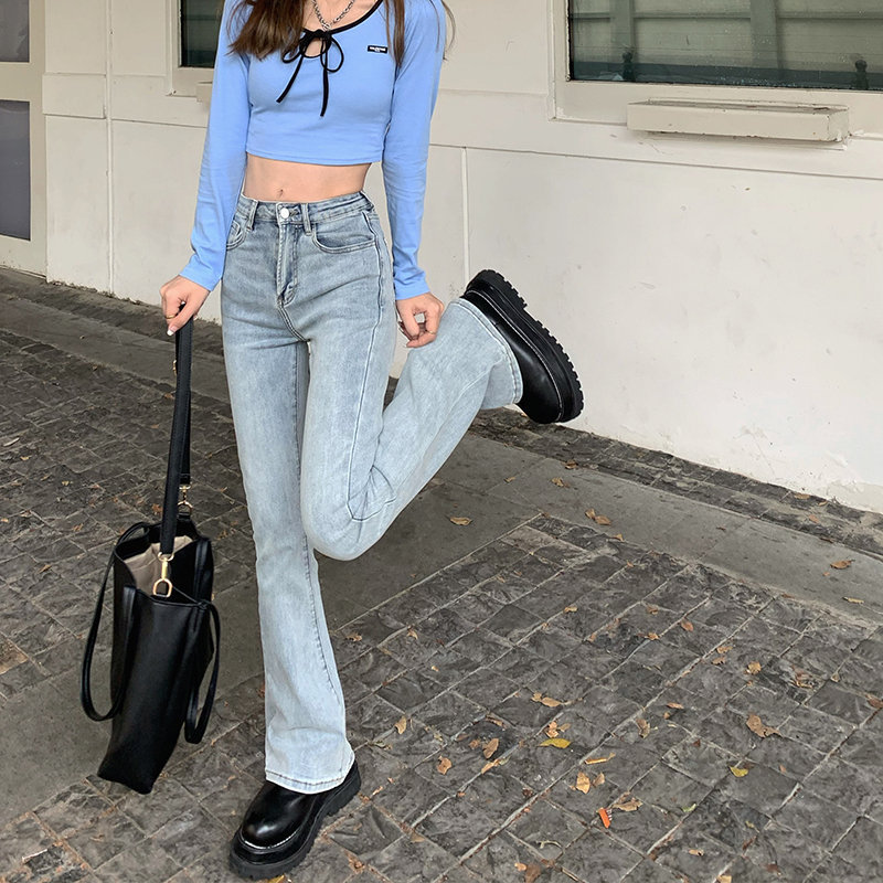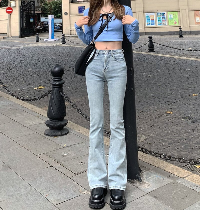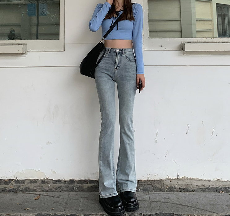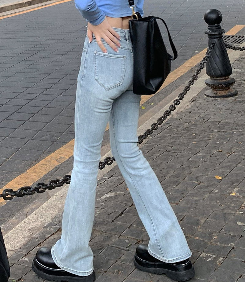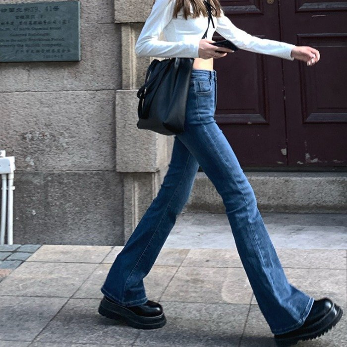 Vintage Simple Flared Wide Leg Figure Hugging Jean Trousers Ootdstyle Amazing